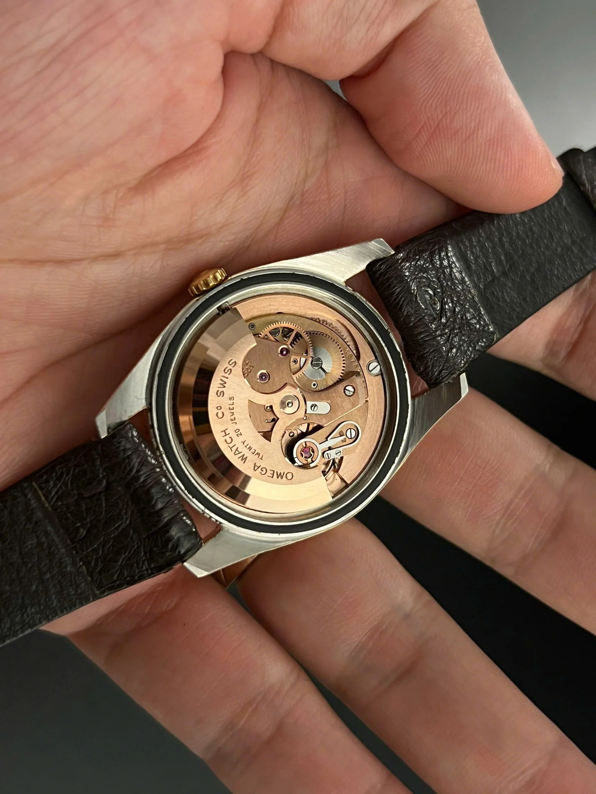 Movement: Omega Caliber 501 (Serial number in 16 mils range, dating the watch to approximately 1958)