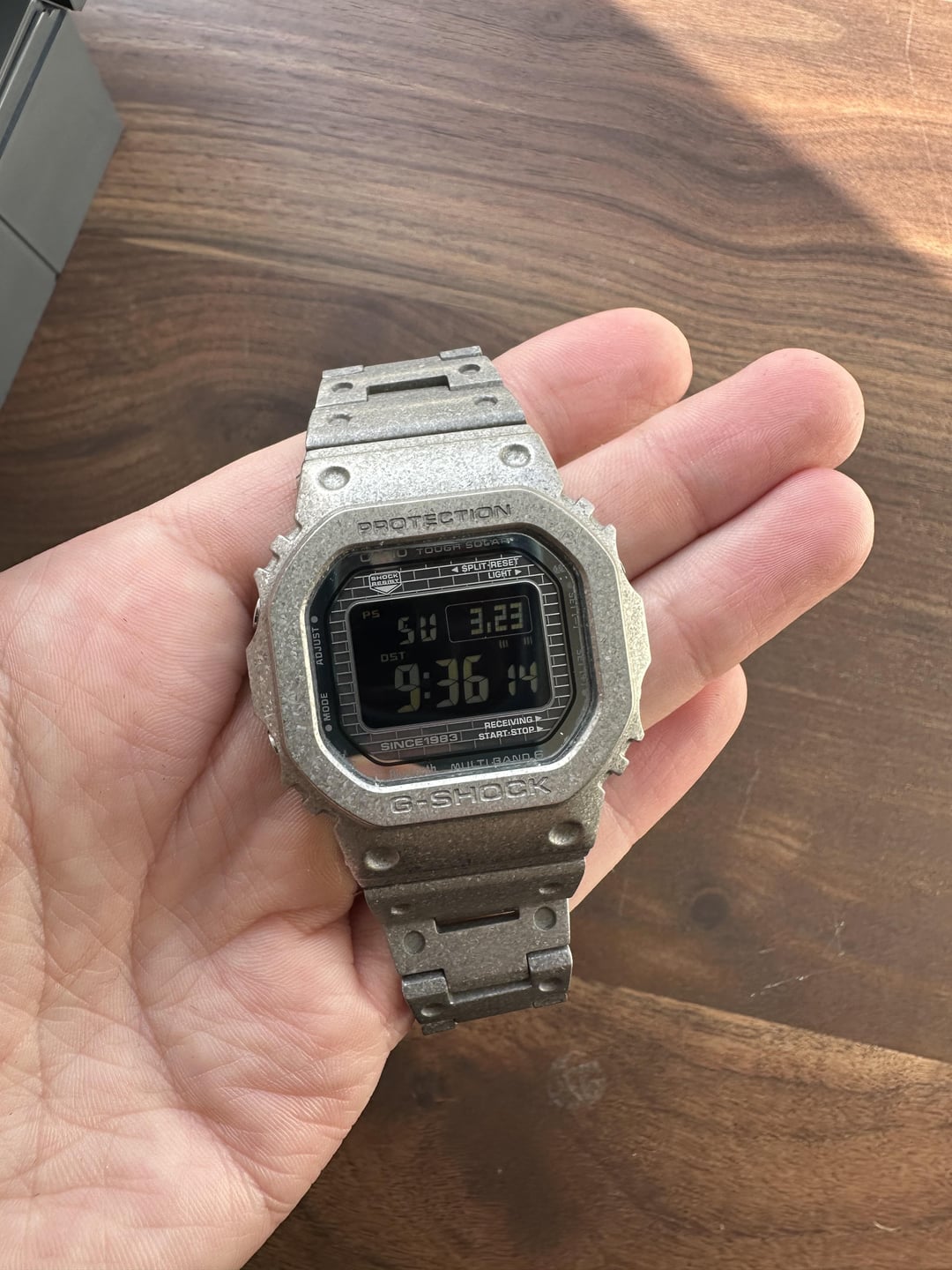 Hello Watchexchange, I am selling this G-Shock from my collection. I bought it a little over a year ago direct from Casio. I’ve decided to shift my collection to a strict one watch per brand and that means selling off some cool watches like this one! I bought this watch primarily because of the material and color - I haven’t seen anything like it. It gets compliments, but it’s also a little more under the radar than the shinier metal versions. Overall watch is in great condition. No visible scratches despite getting a bunch of wrist time. This watch is a tank. Comes with the original box and papers. Location: San Francisco, CA Price: $600 Timestamp: [https://imgur.com/a/r6rmqxq](https://imgur.com/a/r6rmqxq) [Casio.com listing](https://www.casio.com/intl/watches/gshock/product.GMW-B5000PS-1/) I will ship anywhere in CONUS. Paypal/Venmo/Zelle. Let me know if you have questions.
