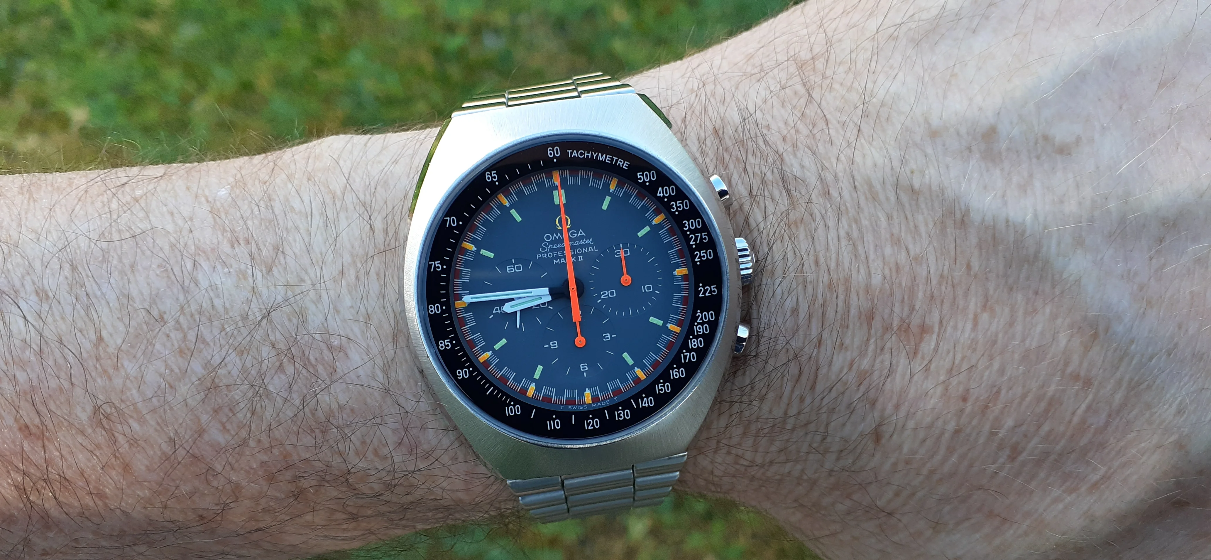 I am selling my Speedmaster Mark II "Racing Dial" Please look at the photos for condition. It was serviced by Nesbit's Fine Watch in Seattle in September 2022. I will include all the parts they sent back and the service paperwork proving they serviced and timed the watch. It is a great looking watch but it is vintage, not brand-new. Nesbit's polished the facets on the sides of the case but you can still see where deep dings were before service. The back is polished the most but the Omega hippocampus is still sharp. It has a clear watch crystal protector on it (I don't like scratched mineral crystals) but you can pry it off with a fingernail. It is running fine and the sub-registers reset correctly.