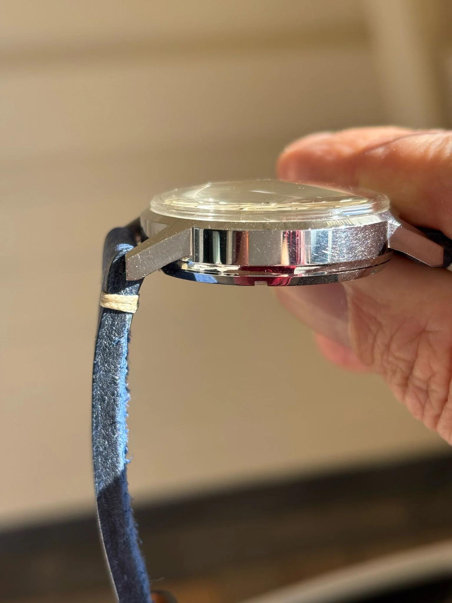 The lume on the hour hand is a shade lighter and appears to be relumed. It is not very visible when you are wearing the watch.