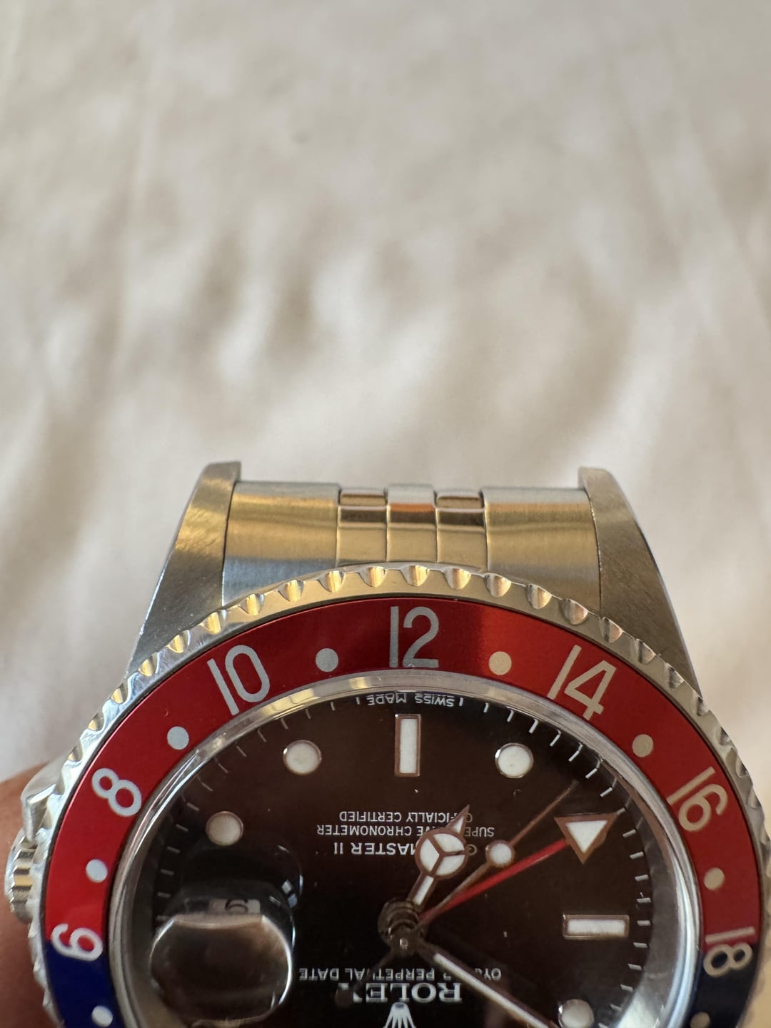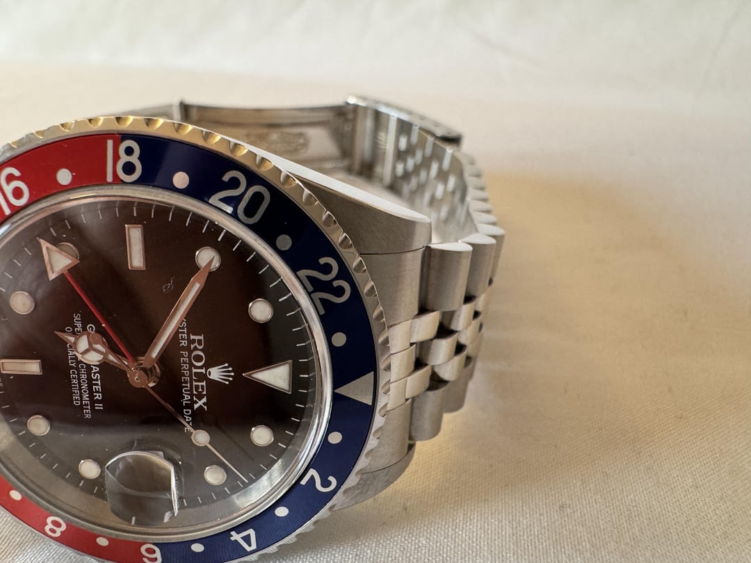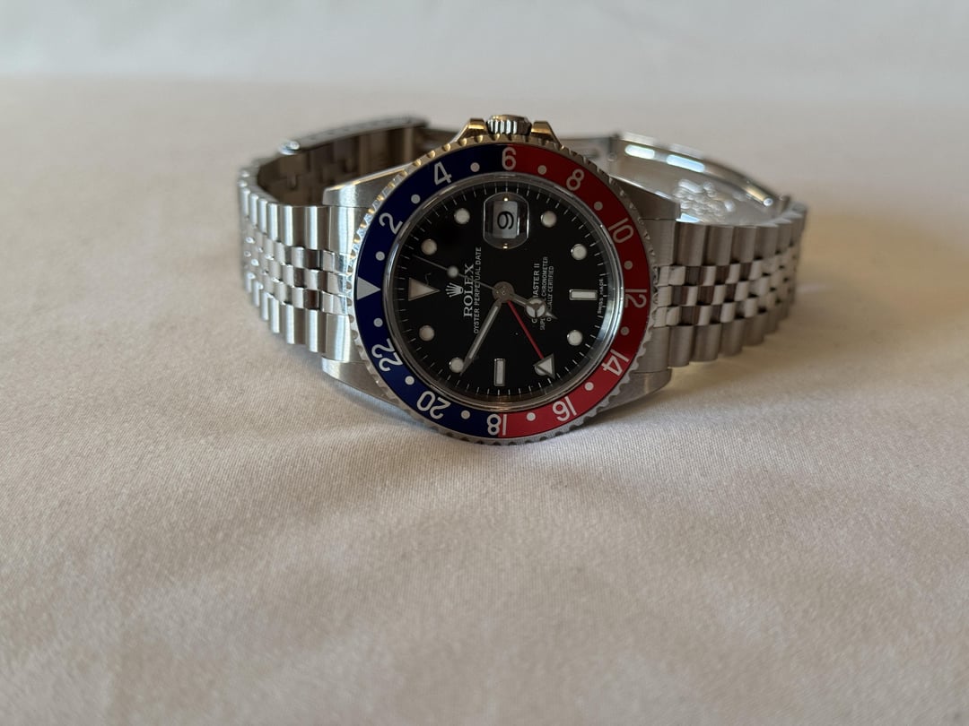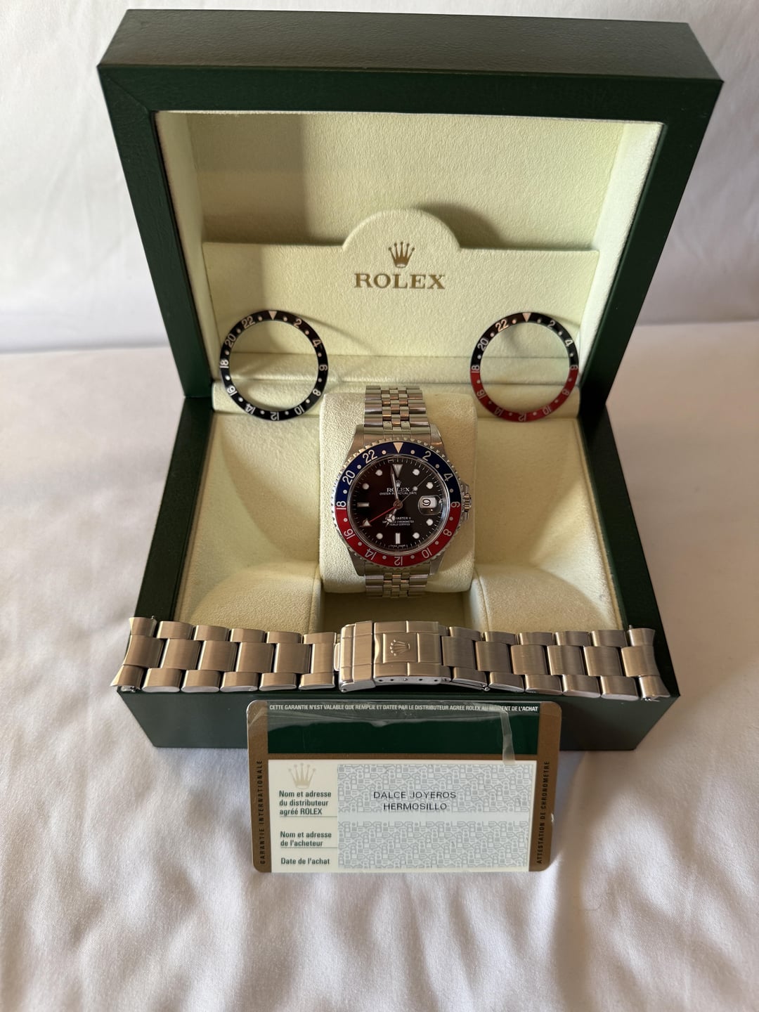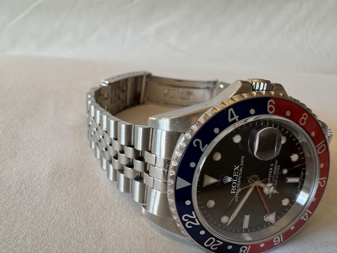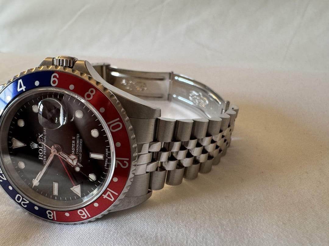 Rare and collectible 16710 GMT-Master II STICK/ERROR DIAL in very sharp condition; check out the beautiful beveling on those lugs. See detailed pics. More than happy to show it over a video call as well or specific additional close up pics Z serial, \~2006/2007, 3185 movement Runs excellent 11 links, mint/tight original 78790A bracelet Nice Pepsi bezel insert with only light surface wear Watch + Box + Card + Accessories below: OEM Jubilee + OEM Oyster OEM “Coke” + Black Bezel This watch was originally sold on the Pepsi bezel + Oyster Bracelet. As such, the oyster bracelet is stamped with the era-correct OP code. I purchased the Jubilee bracelet from Rolex directly in September and it is the 62510H bracelet with correct 502T end links stamped with 50. This is offered here as a true collector’s set, 6-watches-in-1 so I’d recommend buying as is, but I am also able to sell the bracelet and bezels separately: $12,900 16710, Box, Card (Pepsi Bezel on Oyster Bracelet) $1,650 62510H Jubilee (with receipt) + Coke Bezel + Black Bezel Or take the full set as is for a discounted price of $14,250. Open to offers and would only consider trading towards a modern, two-tone Submariner.