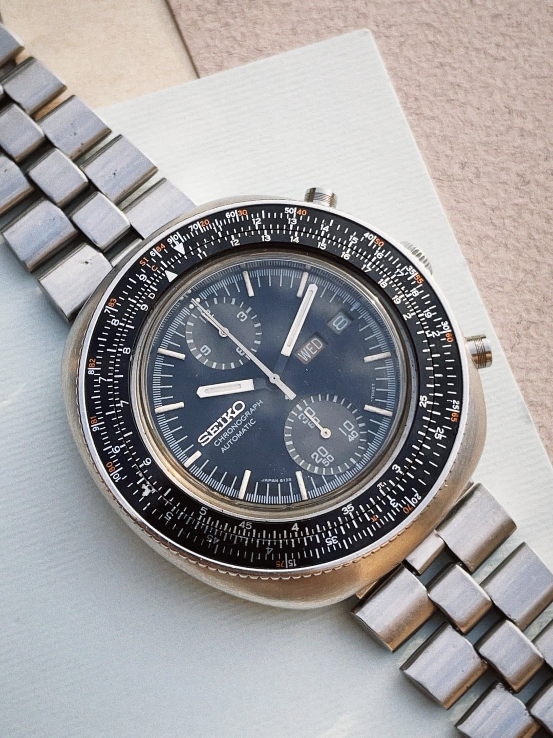| VINTAGE SEIKO AUTOMATIC CHRONOGRAPH "UFO" YACHTSMAN 6138-0017 November 1972 blackd_37 (337) |