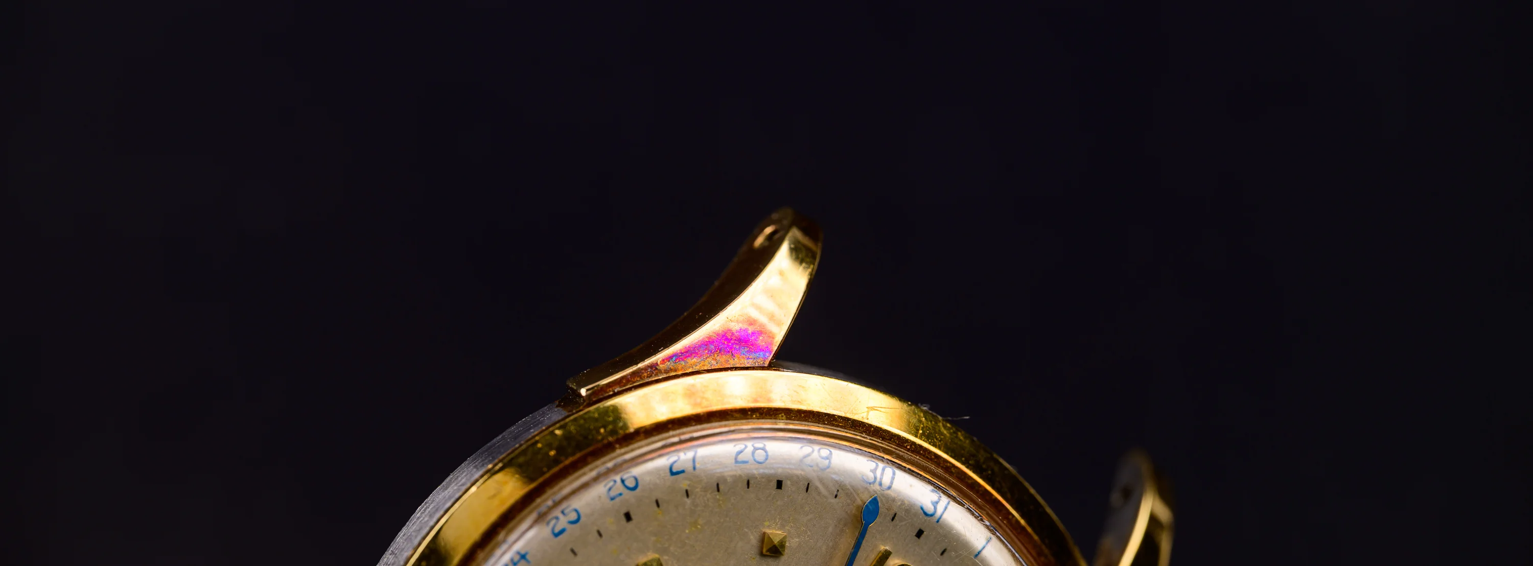 As you can see, this watch has been well-preserved. The dial is original, and has all of the correct printing intact. It does have small scratches at the base of the handstack and some exceptionally tiny stains/dirt marks on the dial, the latter of which especially aren't really visible without magnification. The hands are original (to the best of the research I've done), with the correct turquoise color on the date hand, and an original moonphase disc. Those familiar with vintage Omega will likely know just how hard finding a Cosmic with original dial in good condition can be – it's truly not often that these pop up without being redialed.