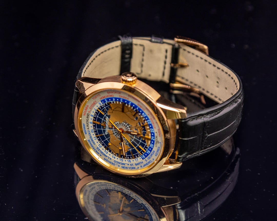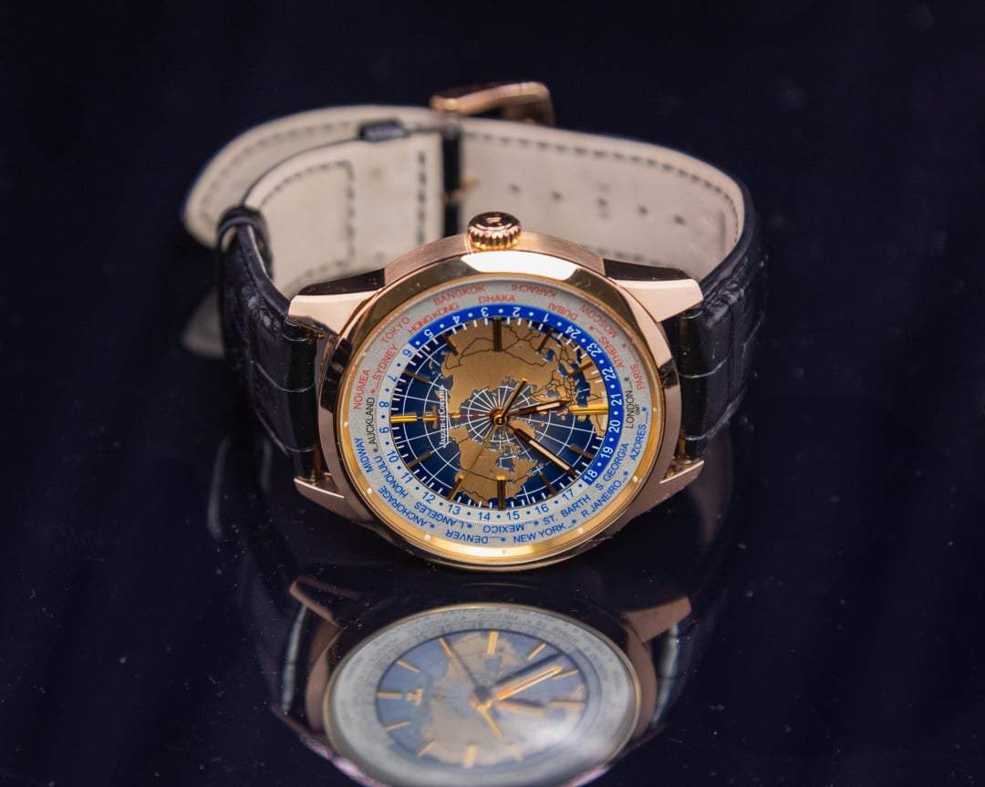 : JL Q8102520 JL Geophysics Universal Timer rose gold 42mm case Includes: Box, Card, manuals Price: $12995 Year: 2017 The JL Geophysics Universal timer is a showstopper! It had an original MSRP of almost $30k!!! The watch is very unique, and you will not see another person in the crowd with this watch. This watch is perfect for the international business man.