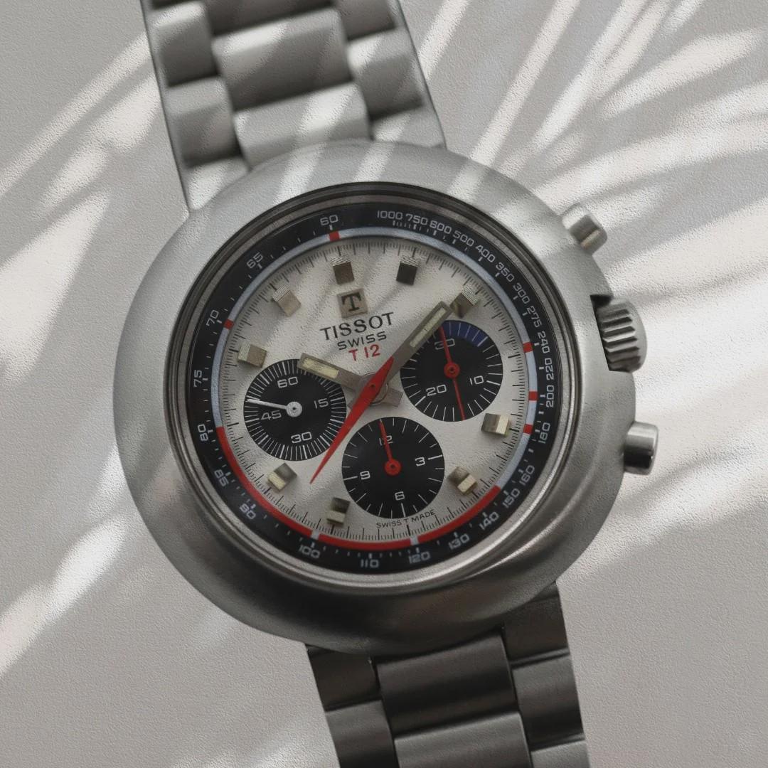 The Tissot T12 chronograph has a typical 1970’s case shape. At 44mm its rounded cushion resembles a UFO. The lugs are completely enclosed in the shapely case thus making the bracelet appear to be integrated. Powered by the manually wound Tissot Cal. T12 which is actually the Lemania Cal. 873. The watch comes fitted on its original 22mm Tissot brushed stainless steel bracelet made by Gay Freres with a signed folding clasp. Brand: Tissot Model: T12 Reference: 40504 Movement: Cal. T12 (Lemania Cal. 873) Case Size: 44mm Lug to Lug: 44mm Box/papers: No Case: Stainless Steel Location: Los Angeles Price: $1,799 or best offer CA residents may be subject to sales tax Pictures: [https://imgur.com/a/6c1LEfD](https://imgur.com/a/6c1LEfD) Timestamp: [https://imgur.com/a/C2rzgNP](https://imgur.com/a/C2rzgNP) CONDITION & SERVICING \-Markers and hands have matching lume. \-The dial is in excellent condition. \-The case is unpolished and overall a nice example. \-Service history is unknown.