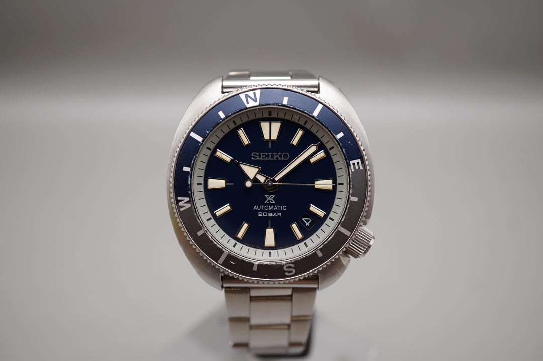 Timestamp: https://imgur.com/a/SD4t9y1 For sale is a Seiko Prospex SBDY101 Fieldmaster Land Tortoise Turtle Automatic Watch Movement: 4R35 Mechanical (Automatic) Condition: Used Strap: Aftermarket titanium bracelet sized to approximately 17cm with no extra links Box: None Warranty card: None Manual: None No wear on crystal. Bezel is difficult to turn. READ: Watch is gaining time on the timegrapher. Approximate measurements: Case diameter: 42.4mm (excluding crown) Lug width: 20mm Lug to lug: 45.4mm Thickness: 11.7mm Asking $175 USD including tracked shipping to US. UPS Expedited/Express, Canadian, and global shipping available at an additional cost. Payment via Wise, crypto, wire, e-Transfer (for Canadians), or PayPal Invoice (+3.9%). No trades and please comment before messaging.