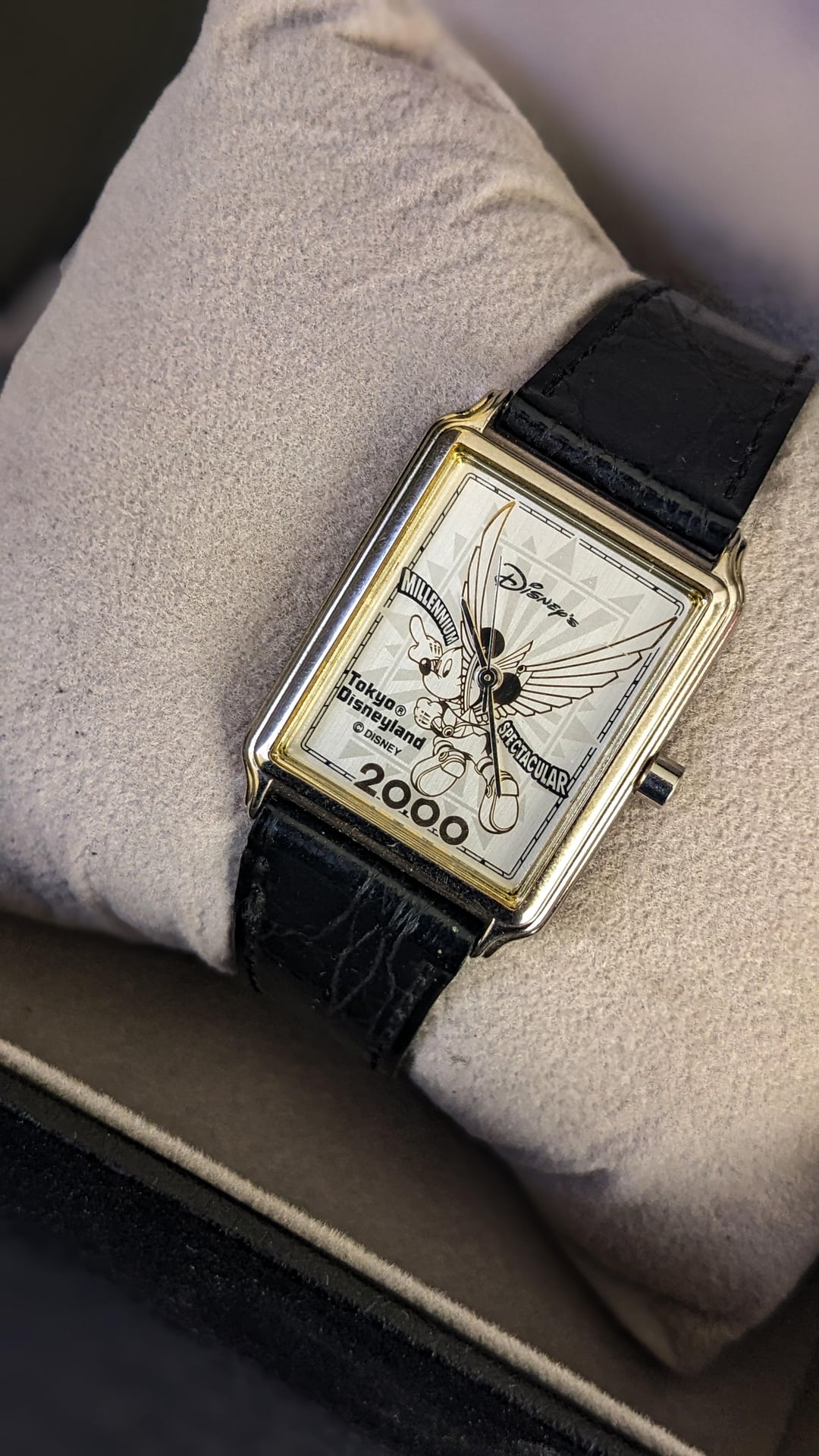 Hello WatchFam, Selling Old Stock Vintage Tank Seiko watch featuring Disneyland Tokyo 2000 which is limited to some pieces. Watch have alloy case and textured dial. The watch contains original strap and buckle. In addition one more aftermarket strap will be provided. Watch have Seiko v701 precised quartz movement working fine (not serviced). Watch features a Tank style with inner Disney millennium dial. It's a unisex watch with dial size 34mm approx. Timestamp: https://imgur.com/a/bs637G1 Price: 120$ ✅ Comment before sending dm ✅ Payment method PayPal ✅ Delivery through ups