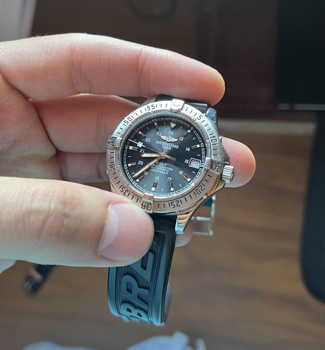 Selling my Breitling Colt Ocean 38mm for $1350 shipped. Condition is used with normal wear, no huge marks or dings. The strap is missing the securing loop, so I’m adding another complete strap w/ buckle that’s almost new. Happy to answer any questions and provide additional videos/images.