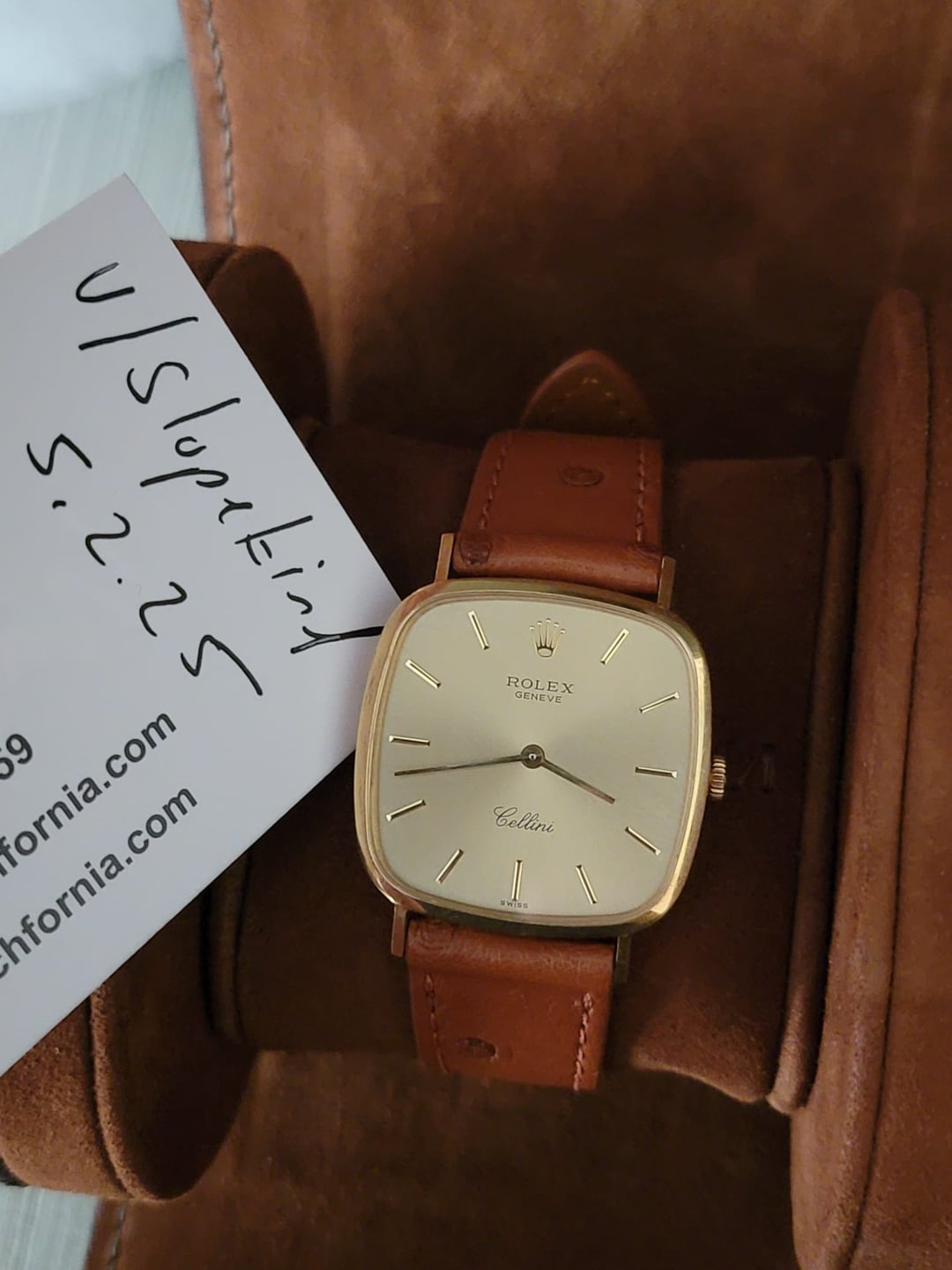 1976 Rolex Cellini This watch is in great shape for its age and running well. The dial is in superb condition with light signs of wear on the case. Will come on aftermarket strap shown with Rolex og clasp. 4.2M serial Price =$3999 shipped Pics & Timestamp = [https://imgur.com/a/faY6j0c](https://imgur.com/a/faY6j0c) IG = watchfornia Cheers, Adam