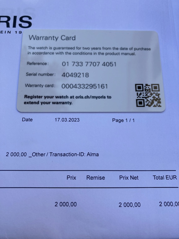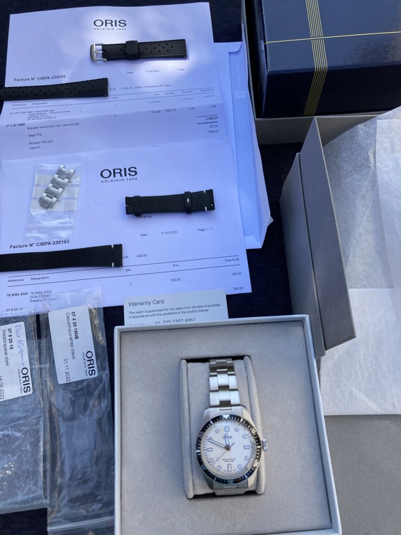 Je la vends 1600€ ( au lieu de 2445€) avec son tropic Oris neuf ( valeur 145€ neuf), son bracelet cuir Oris neuf et son bracelet Oris en bon état avec des micro-rayures ( il a une valeur de 300€).