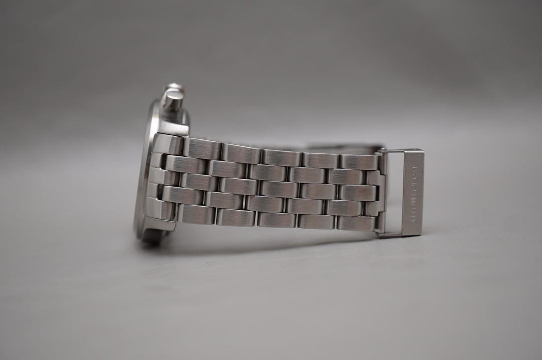 Timestamp: https://imgur.com/a/vBp7cue For sale is a Hamilton Khaki Field 3832 Black Dial Chronograph Quartz Watch Movement: Quartz Condition: Used Strap: Original bracelet sized to approximately 16cm with no extra links Box: None Warranty card: None Manual: None Chronograph starts, stops, resets correctly, no wear on crystal. Approximate measurements: Case diameter: 37mm (excluding crown) Lug width: 20mm Lug to lug: 46.5mm Thickness: 11mm Asking $225 USD including tracked shipping to US. UPS Expedited/Express, Canadian, and global shipping available at an additional cost. Payment via Wise, crypto, wire, e-Transfer (for Canadians), or PayPal Invoice (+3.9%). No trades and please comment before messaging.