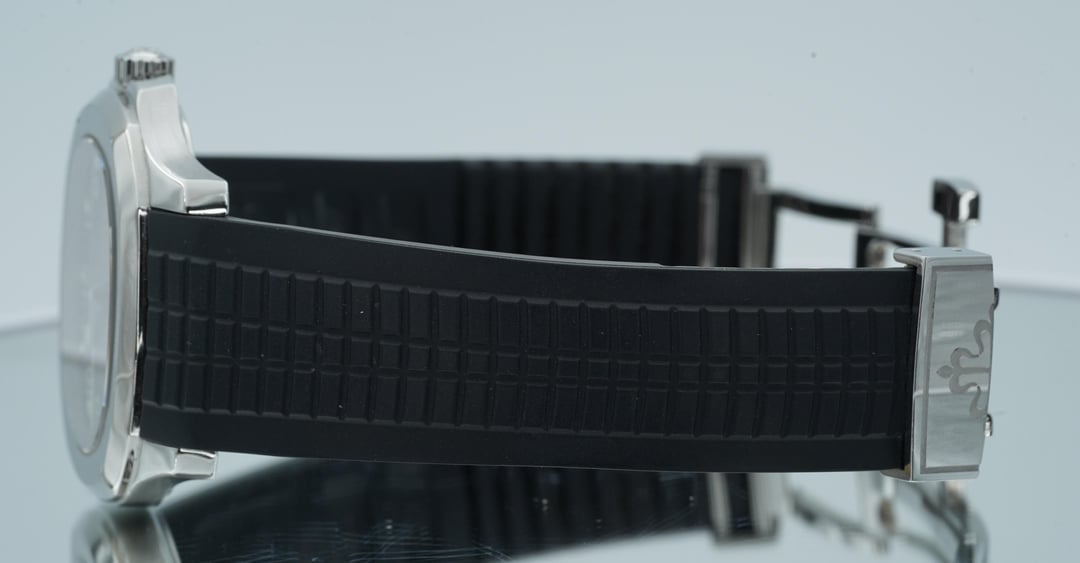 | Patek Philippe Aquanaut 5064 in Stainless Steel on a black rubber strap graysvault (874) |