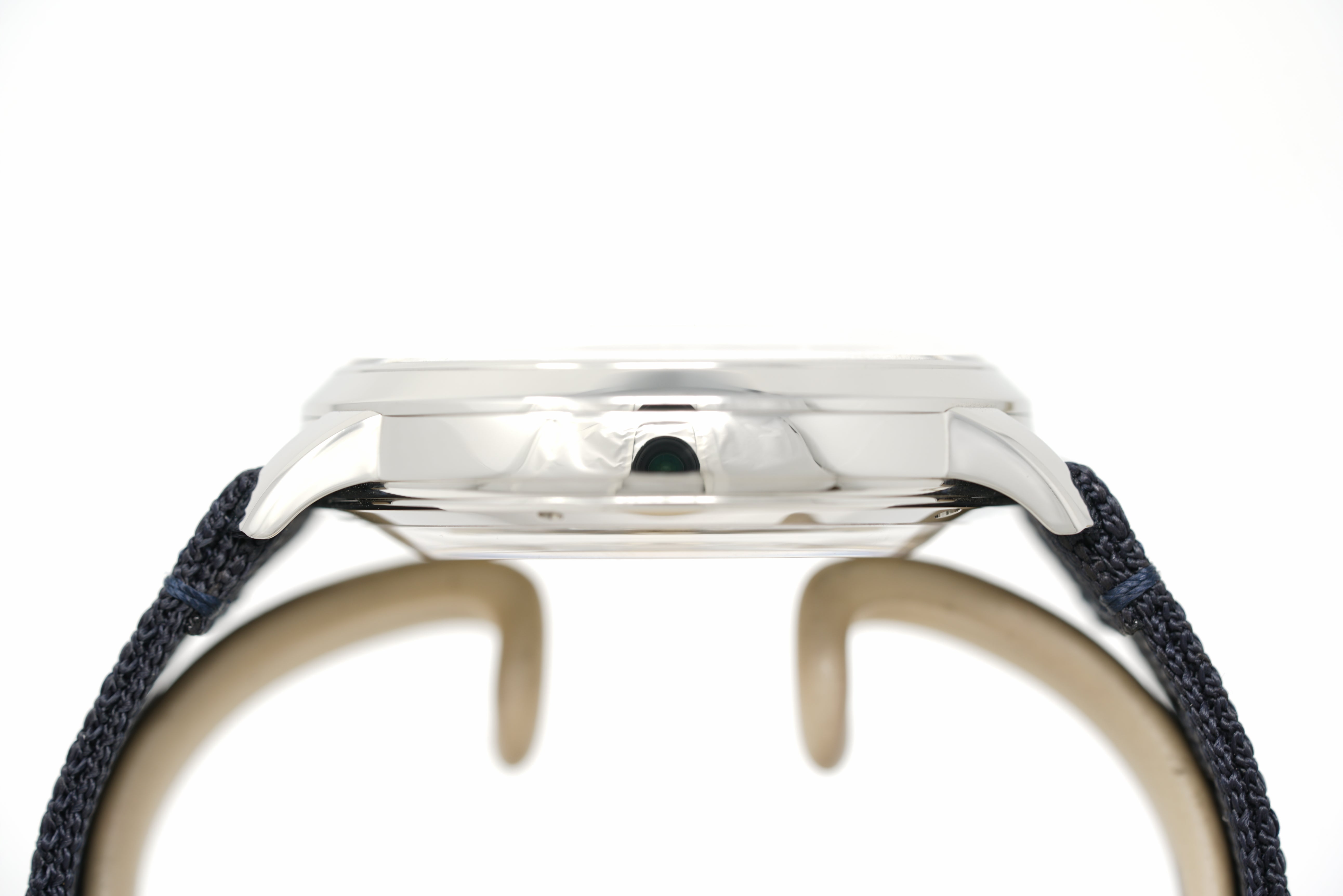 This pre-owned watch is in 92% condition due to slight marks on the lugs, bezel, and throughout the case. The strap is in 93% condition due to slight creasing and marks on the clasp. Also included is an OEM short strap in 94% condition due to minor wear. The short strap will accommodate a wrist size up to 6 and 1/2 inches. Originally purchased in August 2024, this watch comes with its inner and outer box, instruction manual, warranty card, hangtag, and the one-year Topper Pre-Owned Select warranty.