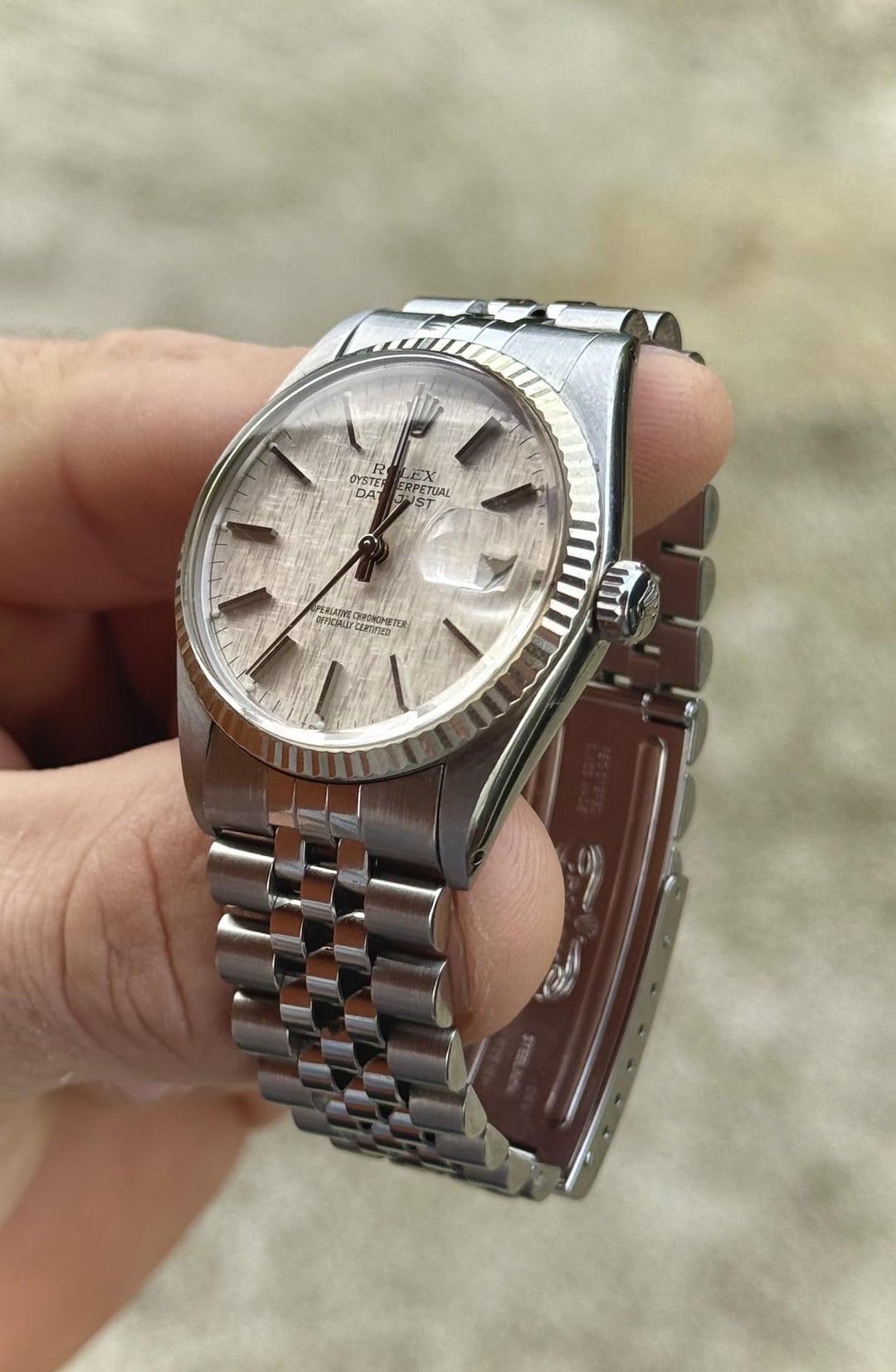 Watch/seller located in Australia | experienced posting worldwide | No Trades Sorry | Active on Moda (#RWB) and Australian Watch Groups | FaceTimes and Reference checks welcome Price: $4150 Rolex Datejust 16014 – Linen Dial, white gold bezel, Jubilee bracelet One of those Datejusts that just gets better the more you look at it. This ref. 16014 hits that sweet spot - silver linen dial, solid white gold bezel, and a Jubilee bracelet that gives it that old-school Rolex wrist feel. The dial texture’s what makes it- subtle at a glance, but plays beautifully in the light. These linen dials are hot again right now. and this is one of the good ones. Tritium lume, sharp case, no stretch to the bracelet worth complaining about and fits around a 7” wrist. Runs smooth. No box or papers, but all the presence you want from a clean vintage piece. Great daily, great collector buy - either way it holds up. ⸻ Specs: • Reference: 16014 • Year: Circa 1979 • Case: 36mm Stainless Steel • Bezel: White Gold Fluted • Dial: Silver Linen (Tritium) • Bracelet: Jubilee • Set: Watch only • Location: Tas, Australia • Shipping: Message for options