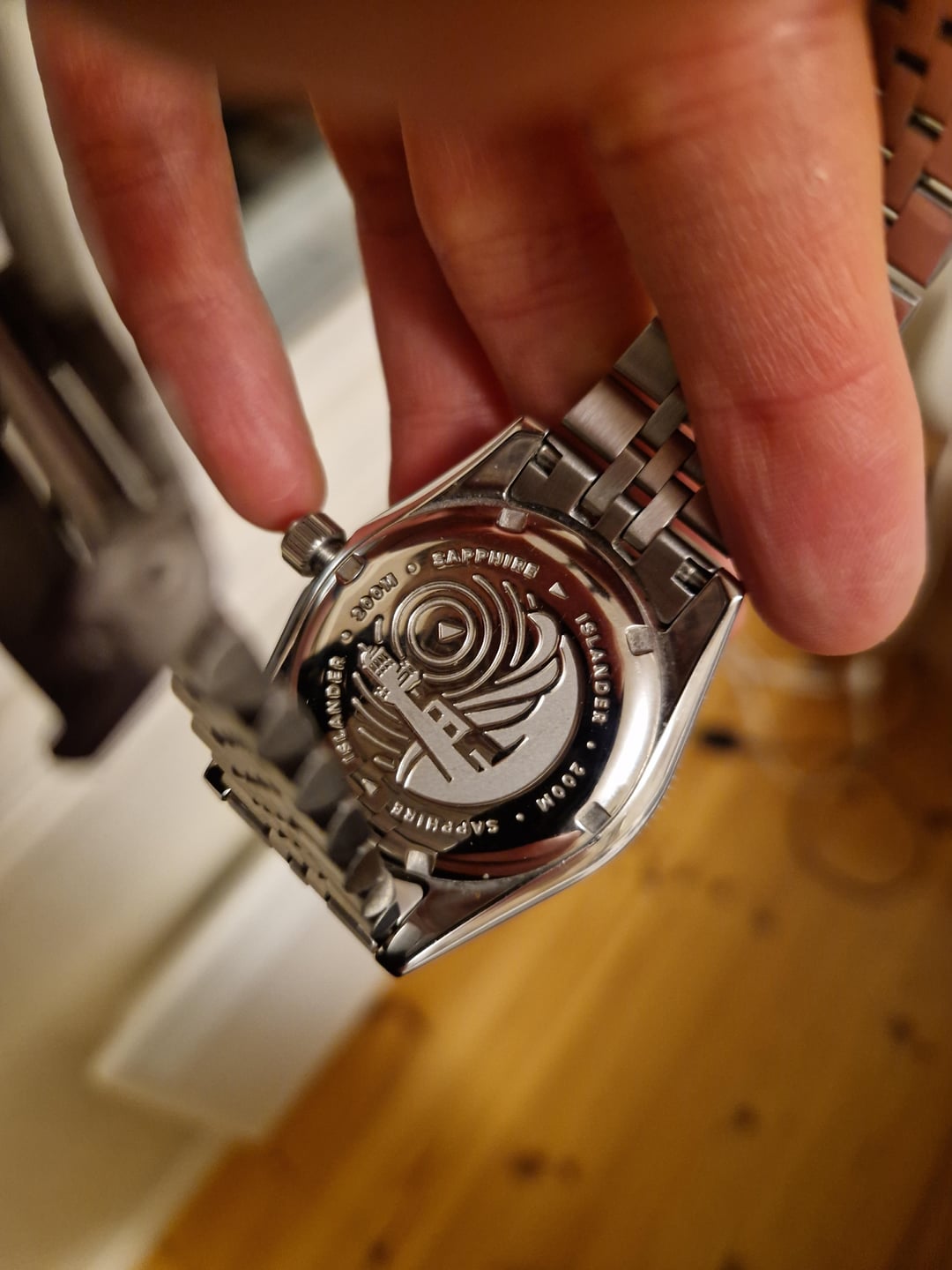 Offering up this Islander ISL-195 Northport. Beautiful two colour design and dial with ripple effect. Comes on the original stainless steel bracelet. The watch is in excellent condition and comes with its original box. Still under warranty until 07/2025. My asking price is 350$, but I am open to offers. Watch is located in Finland.