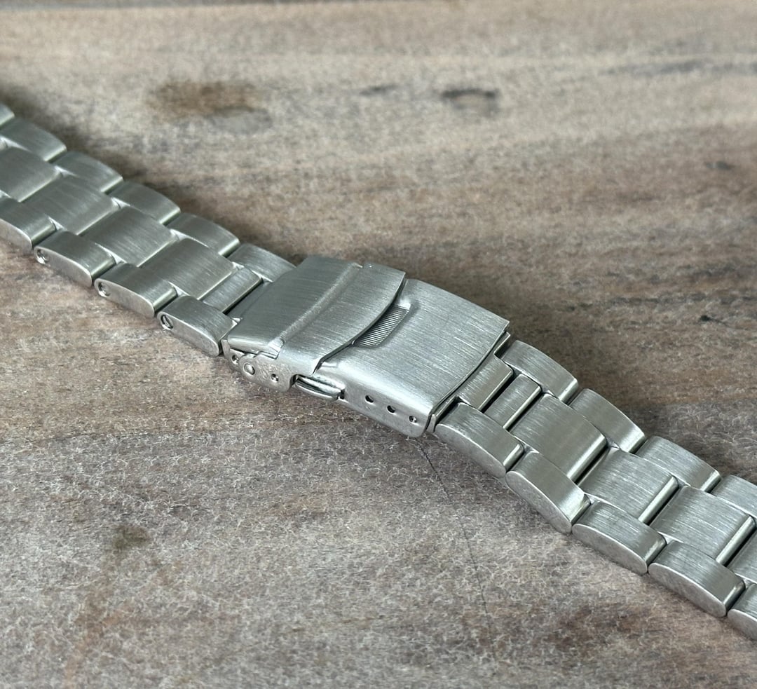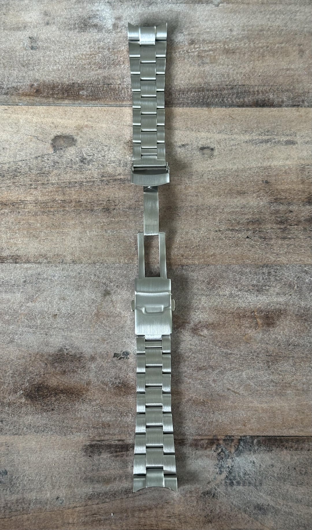 22mm Strapcode / Miltat Super - O Boyer (Oyster) bracelet for Seiko SKX007 SKX009 SKX011 SKX173 SKX175 SKXA35 . This model tapers from 22mm to 18mm at the clasp. Comes with full links and spring bars. $40 shipped! CONUS only, PayPal F&F or Zelle. Thanks for looking!