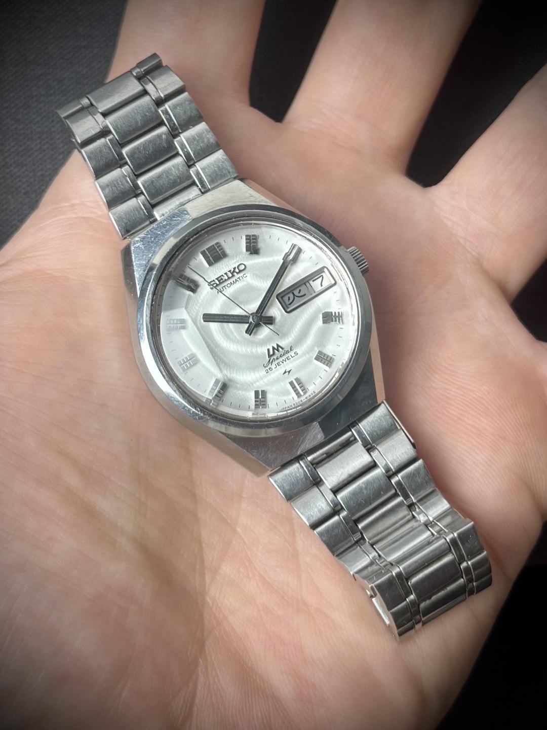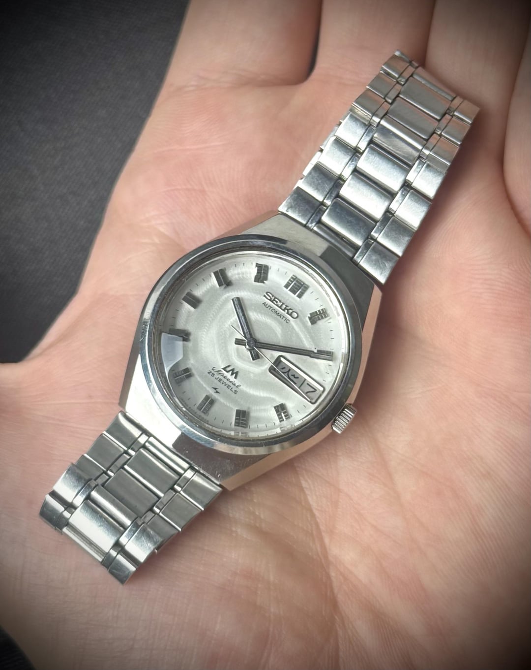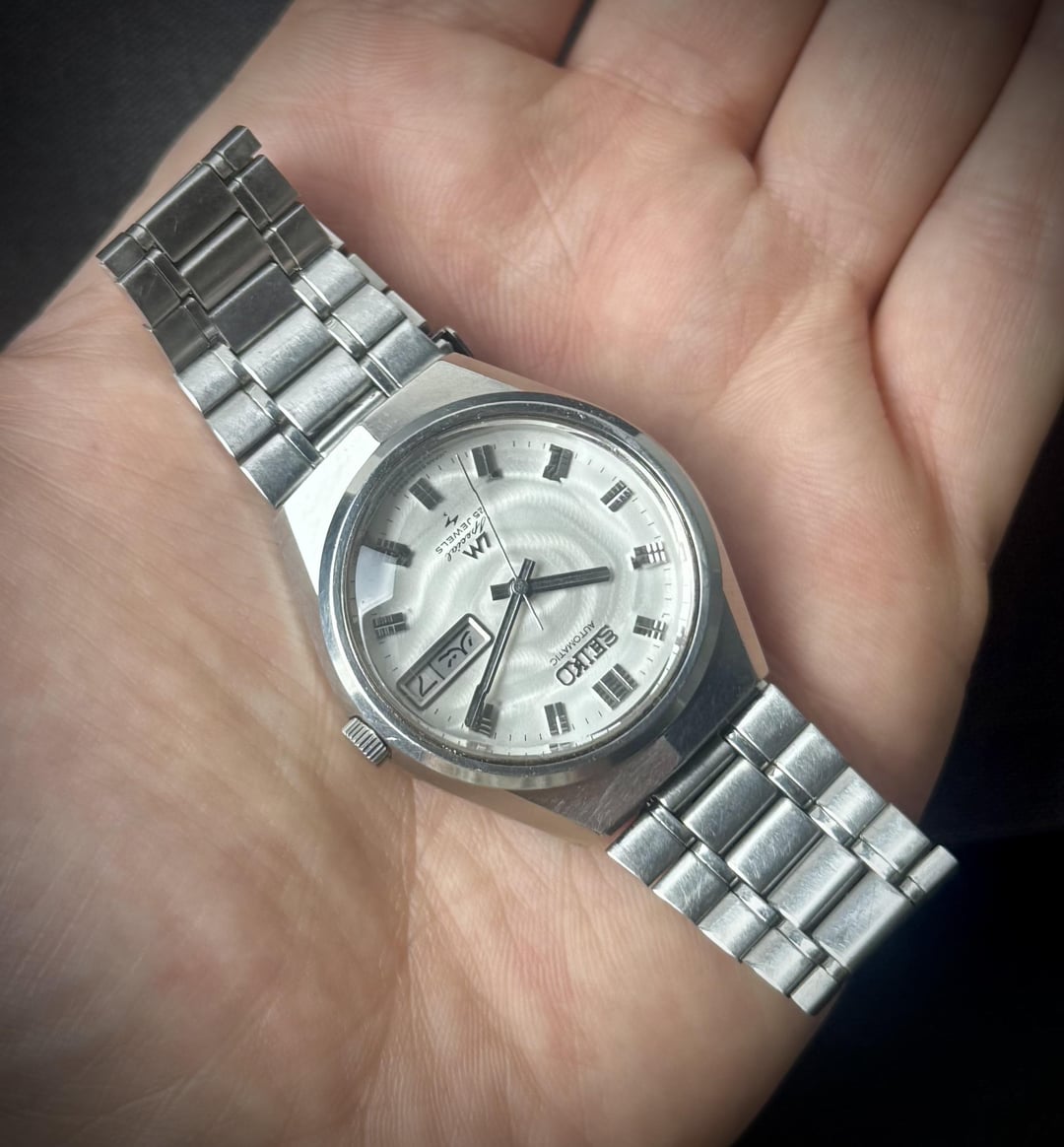 Up for sale is a beautiful Seiko Lord Matic LM Special 5206-6150. Its Hi-Beat movement has been fully serviced. The watch features all original parts, including a beautiful white patterned dial with faceted crystal. 🗓️ May 1973. ⚙️ Cal. 5206A, automatic, 25jewels, 28800 bph. 📐 Size 35mm. 👉 Details: - all original parts. - wonderful white patterned dial in perfect condition. - original faceted crystal in perfect condition. - day/date calendar at 3o’clock, quick set works (English and Japanese kanji). - sharp unpolished ss case. - original ss bracelet. - the watch is fully serviced and runs well. 💶 Price: The price of € 250 includes worldwide shipping. It normally takes 3-5 days for you to receive the watch. 🤝 Payment method: PayPal F&F, Wise, Western Union. 📨 Let’s chat: Additional pictures and videos are available in dm. I invite you to chat with me if you like this watch. 🙏 Please follow my Instagram for more: https://www.instagram.com/gabe_watch/