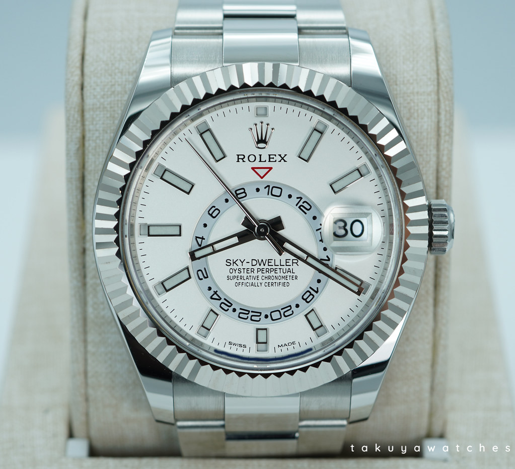 FSOT: Rolex 326934 SKY-DWELLER WHITE DIAL OYSTER BAND 2022 WARRANTY FULL SET 1