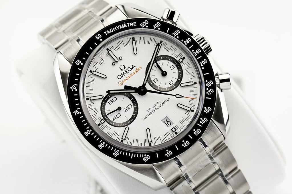 Up for sale is a brand new Omega Speedmaster Racing Master Co-Axial in White Dial, reference # 329.30.44.51.04.001. It comes complete with all boxes, papers, booklets, hang tag and 2025 dated Omega Warranty Card.