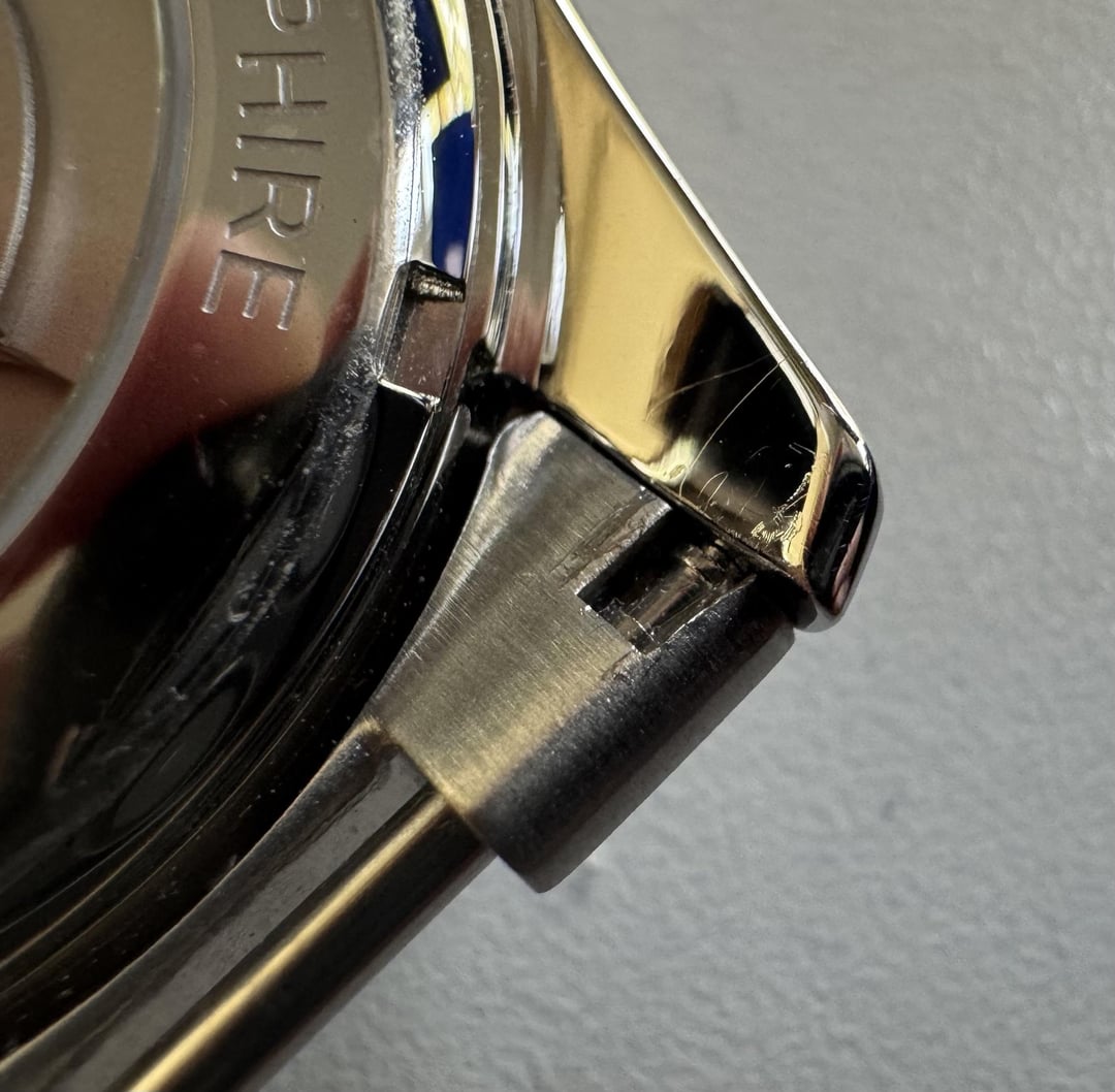 Selling my Brookville high-beat automatic that was purchased just before they were discontinued. Wore it twice, bracelet is unworn. Box included. Asking $200 shipped CONUS. PP preferred, F&F or buyer pays G&S fee. Full disclosure, I don’t like metal bracelets and am crap at changing them out, so I don’t want to mess with completely reattaching the bracelet. I will include a strap tool, should take any non-crap person 2 seconds. I started to do it, but I put a couple small scratches on the underside spring bar area (see last photo) and didn’t want to keep going. The scratches are not really visible unless you are zoomed in, and are on the bottom where they won’t really be seen. They are shallow and could easily be polished out if you had the desire.