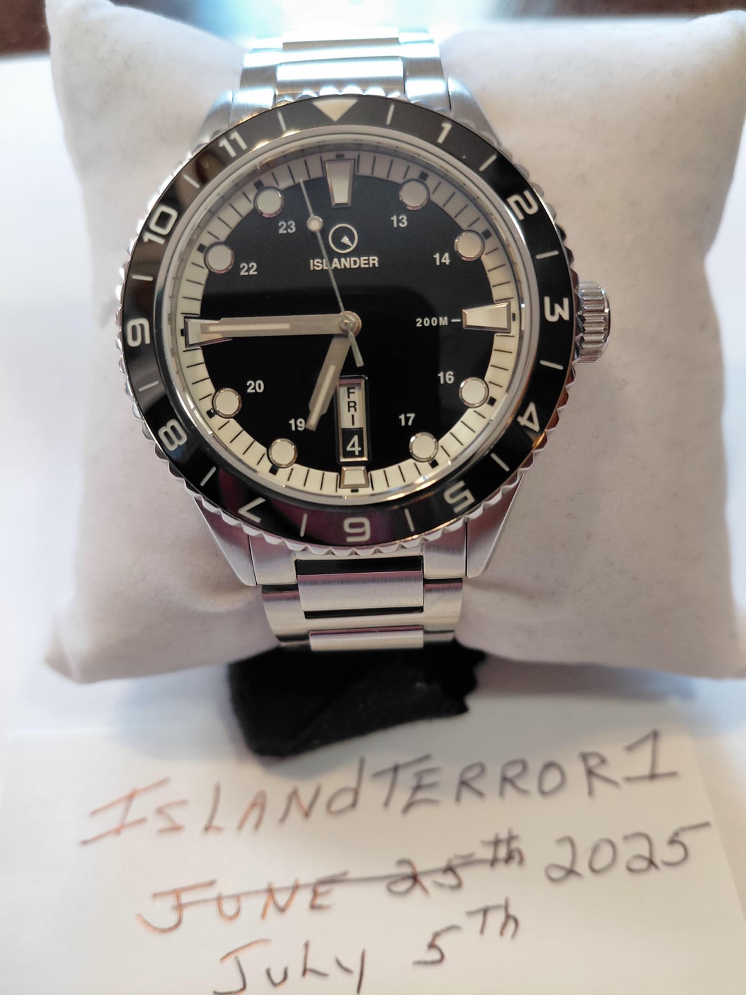 Link to Website : Specifications [https://longislandwatch.com/islander-greenport-39mm-dive-watch-with-black-and-white-dial-isl-300/](https://longislandwatch.com/islander-greenport-39mm-dive-watch-with-black-and-white-dial-isl-300/) Box fresh with only a couple flea bites on 9:P.M. side of case and the clasp (see pics) 2 extra links with screw pins $165 shipped via USPS priority Zelle preferred or PayPal Friends and Family add $ 4.93 fee