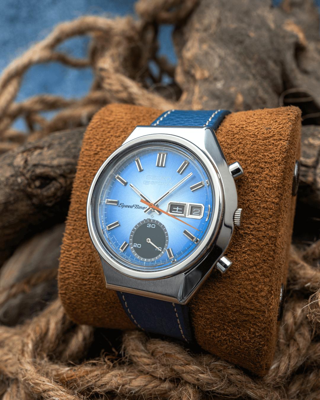 A rare Seiko Speed-Timer JDM variant watch in good condition. Stunning Blue sunburst dial with a deep Green subdial and raised faceted indexes. Orange popping second hand. Cool retro rally design. Unique cushion shaped robust case. Great build quality. Caliber 6139 is one of the best movements Seiko ever made. A column wheel automatic chronograph movement at this price is unbelievable to come by. Movement has been serviced. Great time keeping. Chronograph resets to 12. All chronograph functions are working fine. Amazing condition at 51 year old, ready to be used as a daily driver. Such pieces should be appreciated upfront to experience at full measure, pictures don't do justice to this piece. Sunlight brings out most of its beauty. They were designed to have premium build quality but for only regions of Japan. Case is professionally polished keeping all the sharp brushed lines, edges and mirror finishing. Handling it, I can definitely guarantee this is superior to modern watches of the same price zone. It has both English and Japanese (Kanji) day options. The Kanji(Japanese) date highly complements the dial. The colors are very innovative on this piece, makes a statement of Japanese design. PRICE: $349 USD via Paypal, Zelle, Venmo, TransferWise/Wise, Cashapp, Wire, Crypto. FREE DHL 5 day Shipping worldwide. Considering a full service has been done to the watch, I'm asking a reasonable price. I have a good number of exchanges here for a safe transaction. Check my Instagram: [https://instagram.com/hour.lust](https://instagram.com/hour.lust) * Manufacturing Year: OCTOBER 1974 * Caseback Reference: 6139-8040 * Case size: 39 mm (without crown) * Lug to Lug size: 42 mm * Case Thickness: 14 mm * 6139 Automatic Column wheel Chronograph Movement Pics: [https://imgur.com/a/UEkqnbx](https://imgur.com/a/UEkqnbx) TS: [https://imgur.com/a/pmYa6JF](https://imgur.com/a/pmYa6JF)