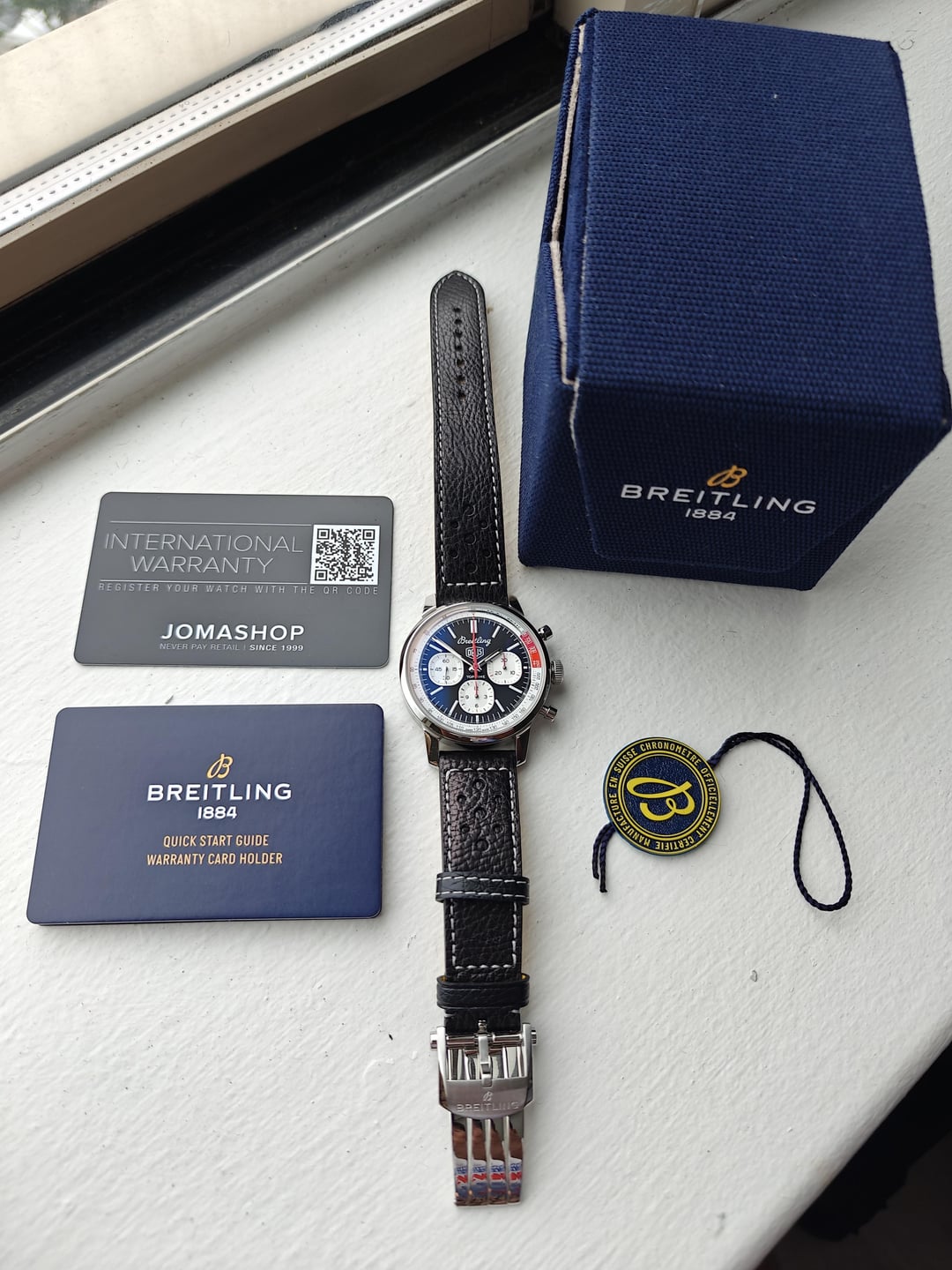 Hello all and welcome to my sale post! Up for sale is a beautiful Breitling Top Time reference AB01765A1B1X1. This watch is a collaboration between Breitling and Deus Ex Machina, an Australian lifestyle/outfitter brand. This watch is in mint condition. There may be some light hairlines from handling, but the only wear of note is mostly creases on the back of the strap. The watch will come with the original box, tag, and instruction manual, and Jomashop warranty card (valid until 04/27) -Reference: AB01765A1B1X1 -Size: 41mm -Movement: B01 -Strap: Original strap -Watch with original box, tag, instruction manual, and Jomashop warranty card Price dropped to now: $3,995 shipped anywhere in the continental U.S. No trades sorry! I take Zelle (preferred), or bank wire as payment. Paypal F&F/Venmo can be an alternative if you many feedbacks on this subreddit. I have 100+ confirmed transactions on watchexchange, and many more on other platforms. Buy with confidence!