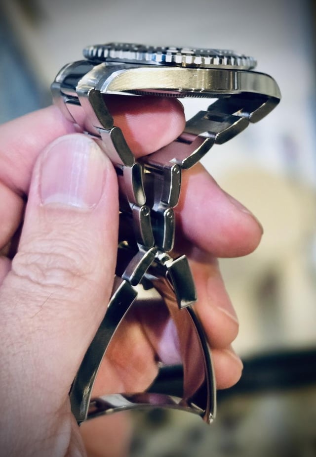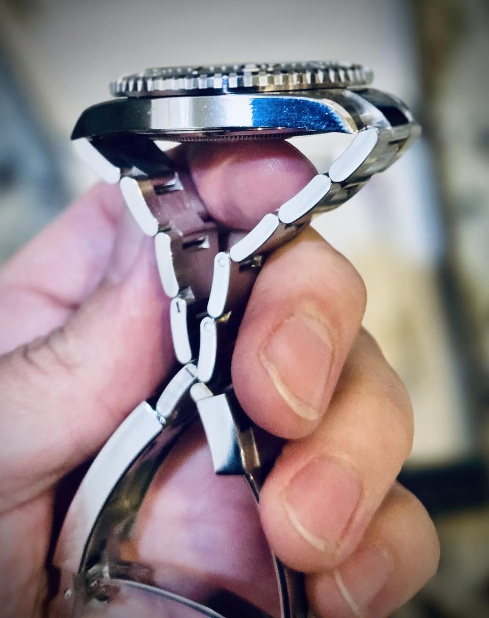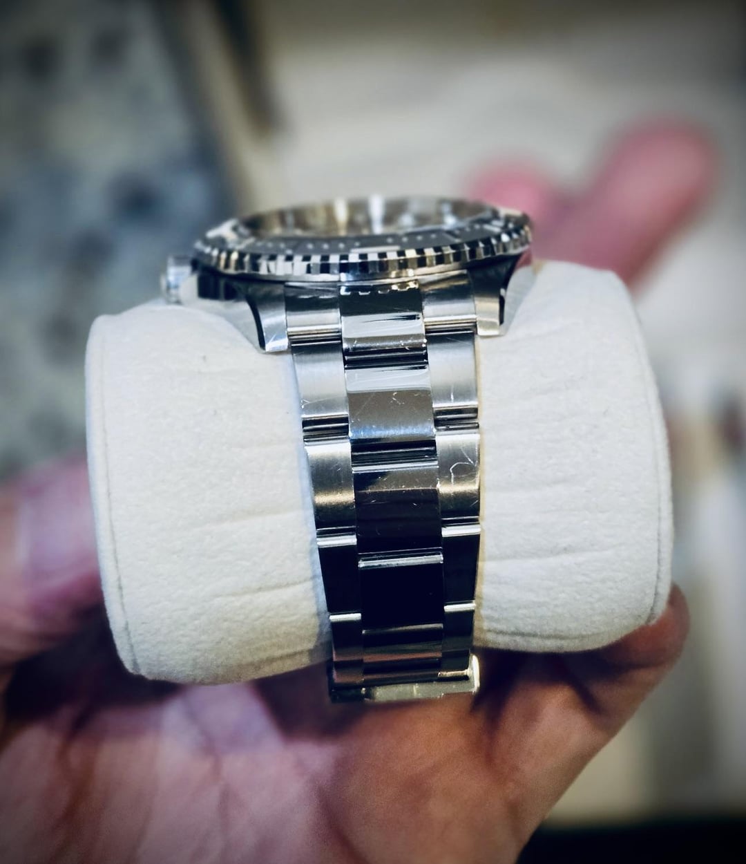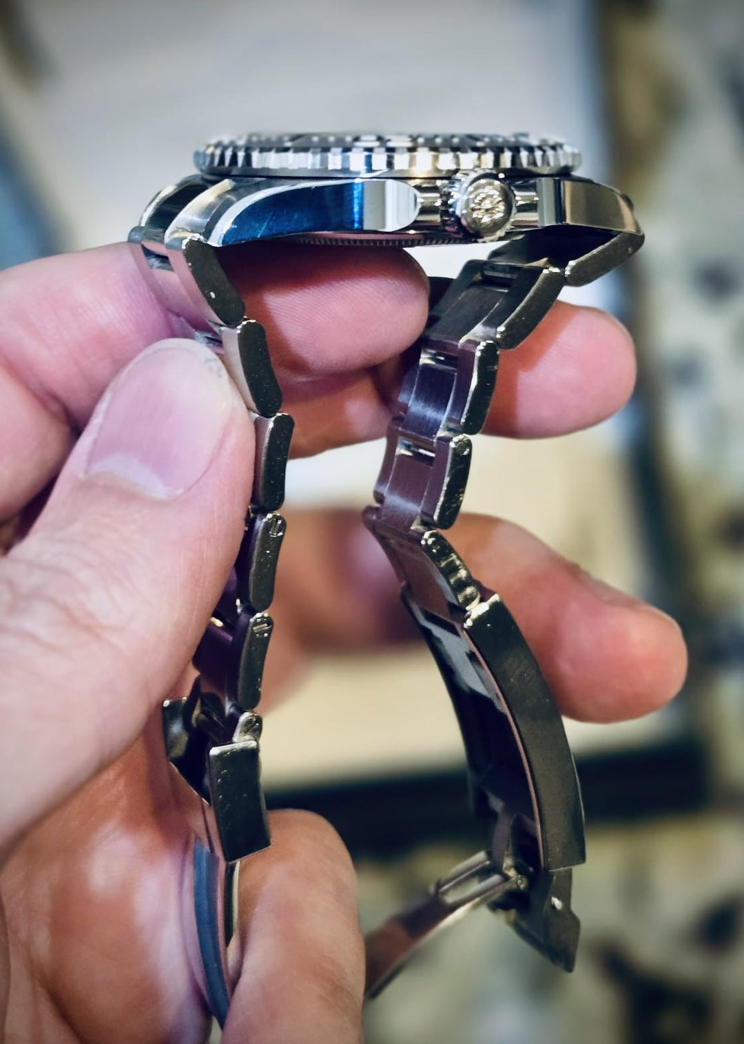 Timestamp: https://imgur.com/gallery/exp-timestamp-dY4Lo8I Pics: https://imgur.com/gallery/exp-pics-o1AYSTc FSO: $1k OBRO, shipped USA. No trades please, trying to recoup some funds on another purchase. Up for sale is my personal Ginault Expeditioner in ocean blue 🔵 the enameled sunburst finish is amazing, it can be dark navy to almost black on low light so it’s super versatile. The ceramic relief bezel is very “Yachty” in its look but the pops of red on the date wheel, dial, second hand are so well executed. The optometry grade crystal is one of the most legible with the least amount of glare you can find for anywhere near this price. The mil-sub sword hands and stick indices hold a ton of line and shine through the whole night. Currently sized for a 7.25” wrist with 2 full and 1 half removed links included. The movement has been keeping around +1 to +2sec/day for me, the regulation chart and full kit all included. The 120-click bezel is one of the smooooothest, while still being super audible. It’ll make you smile, guaranteed. Movement: Sellita 200-1 regulated in-house in 6 positions over 6 weeks Power reserve: 40hrs (per in-house testing) Case: 40mm Lug to lug: 47mm Lug width: 20mm Thickness: 11.5mm Water resistance: 300m / 100ft I added some filtering to highlight the hairline and micro blemishes on clasp and polished inner links on the bracelet, but to the naked eye or on wrist it’s still in great shape with some markings simply because polished bracelets are what they are. In-person and on wrist, it much less noticeable than these photos highlight. Crystal and bezel are completely clean and blemish-free. Clasp has a little normal desk diving but not much. Shipped from Abq, NM - US only Venmo, Zelle, PP FF only Please feel free to reach out to me if you have any questions or would like extra photos/video, more than happy to send over!