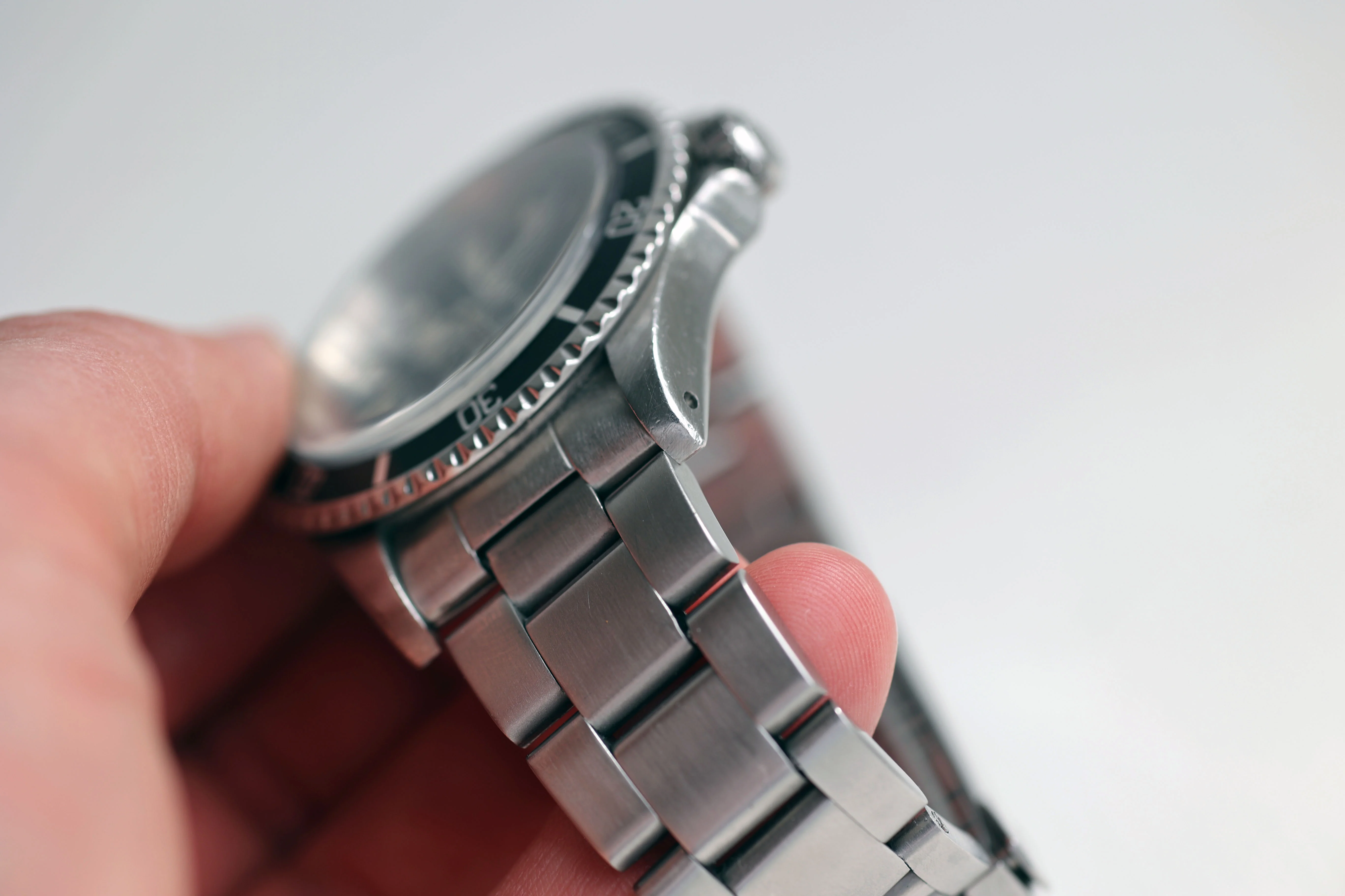Case: Thick case which has been polished in the past. Bevels can still be seen and crownguards are also fat. Insert is a nice black medium font and insert pearl is luminova.