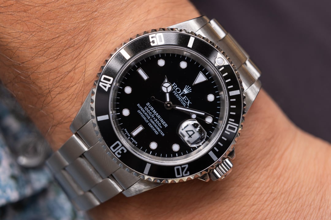 [pics](https://imgur.com/a/ZbFGJEL) [timestamp](https://imgur.com/8wRiBiK) Case: Excellent condition 40mm holes case with thick lugs. Very light signs of wear from use. Y-serial. Dial: Excellent black glossy luminova dial with matching hands. Bracelet: The 10.5 link oyster bracelet is in excellent condition and remains tight. The clasp is stamped with a DT code dating it to 2002. Includes divers extension. Accessories: Inner/outer boxes and original warranty paper. Notes: An excellent example of a Sub date coming in with box and papers. Offered at $10,250 shipped. Payment by PayPal F&F, bank wire, or crypto. Located in San Diego, CA. Insured overnight FedEx shipping. International shipping available. Buyers shipping the watch to CA will be required to pay applicable sales tax. Thanks for looking and feel free to message me with any questions!! Hit me up on IG @mvvwatches Email: [[email protected]](mailto:[email protected])