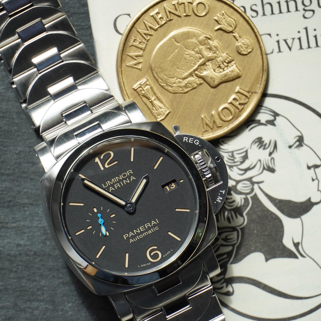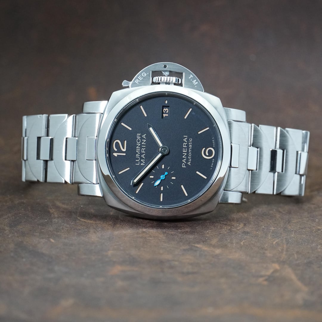 Bold. Capable. Surprisingly Versatile. The PAM 00722 Panerai Luminor Marina is all Panerai, but still has some unexpected versatility. On a nice leather strap, this is a relatively (it’s still a Panerai) versatile piece, perfect with a casual fall outfit. The 1950 case is juuuuust right for Paneristi, and the sandwich dial unsurprisingly offers both visual depth and tremendous lume. The pop of blue on the small seconds hand indicates the in-house 3 day caliber inside. And who doesn’t love a see-through case-back? Whether you go full-Panerai-bang with the absolutely rock-solid bracelet, or tone it down with a nice strap, you really can’t go wrong here. This example is in nice shape, with box and papers. It is also under FACTORY WARRANTY UNTIL 2029. Please take a look at our feedback which we’re very proud of. Happy to provide references and FaceTime. Asking $6400 shipped overnight insured within CONUS. Thanks for looking!