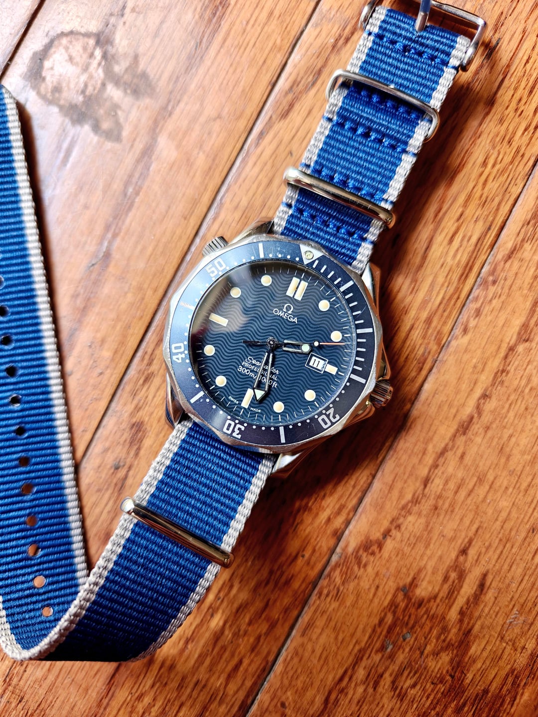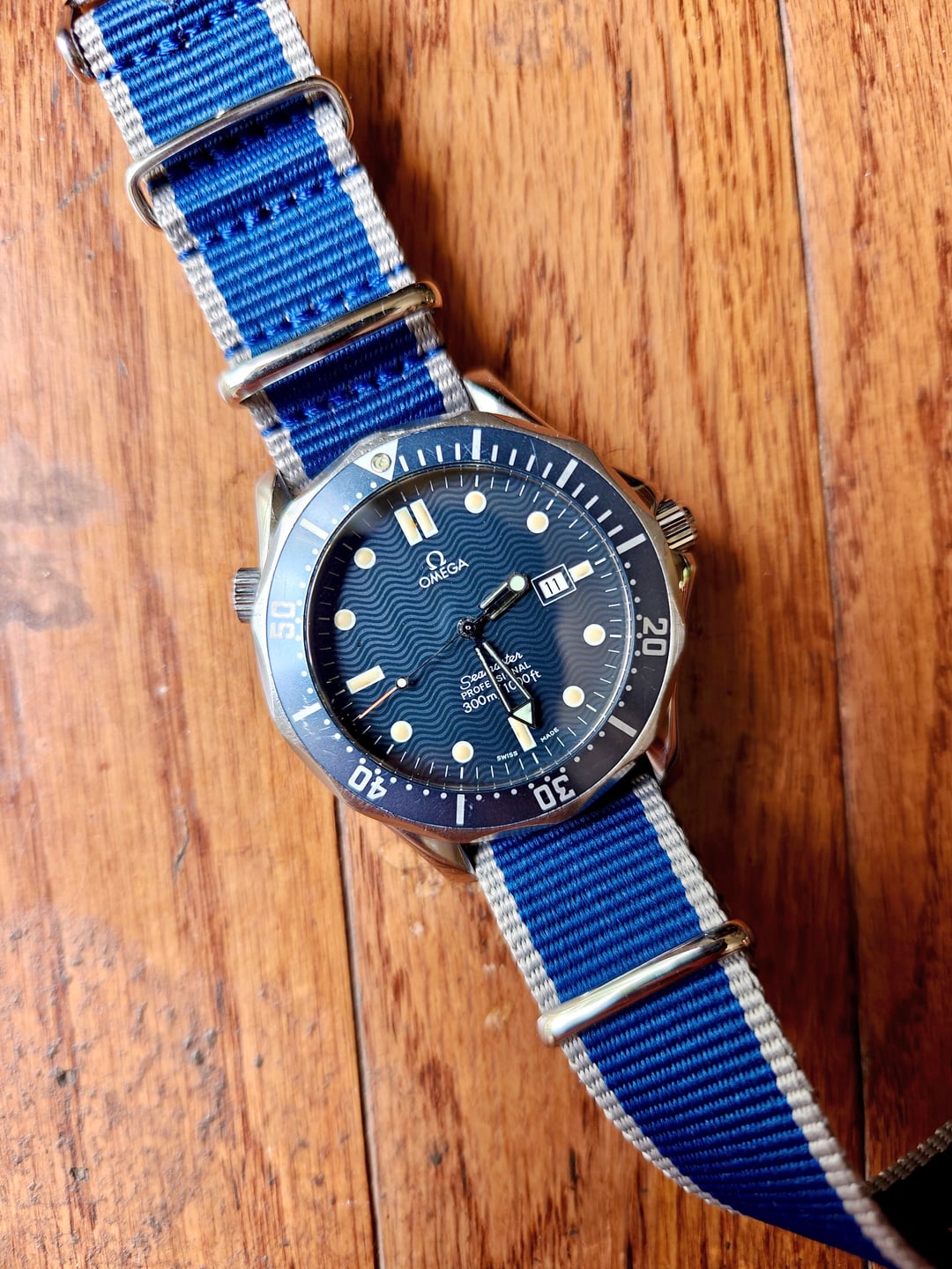 Hello all and welcome to my sale post! Up for sale is a watch that needs no introduction. This is the Seamaster Professional reference 2541.80, also known as the watch worn by James Bond in the GoldenEye film. The significance is that this is the first Bond film which the Seamaster becomes his signature watch. This watch is in good condition for its age, with scratches and wear on the case and bezel. The lume pip has seen better days, but does give it that cool worn/vintage look. Serial # dates this watch to around ~1993. Service history is unknown. The watch will come as watch only. No box or papers. -Reference: 2541.80 -Size: 41mm -Movement: Omega 1538 Quartz -Strap: Aftermarket Nato strap -Watch only Price here at $1575 shipped anywhere in the continental U.S. No trades sorry! I take Zelle (preferred), or bank wire as payment for higher priced items. Paypal F&F/Venmo can be an alternative if you have feedbacks on this subreddit. I have 100+ confirmed transactions on watchexchange, and many more on other platforms. Buy with confidence!