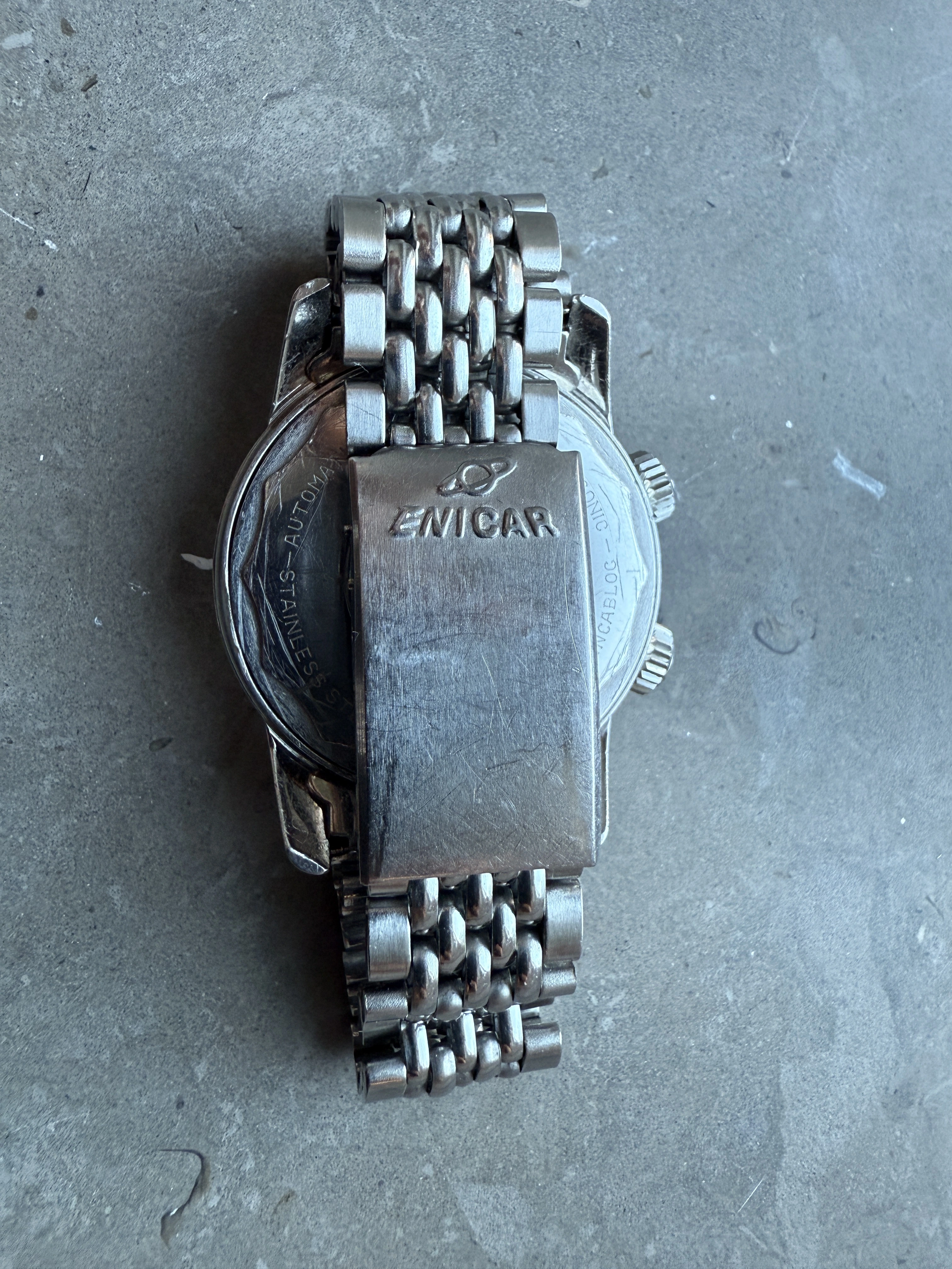 • Bracelet: Long Original signed Enicar stainless BoR steel bracelet