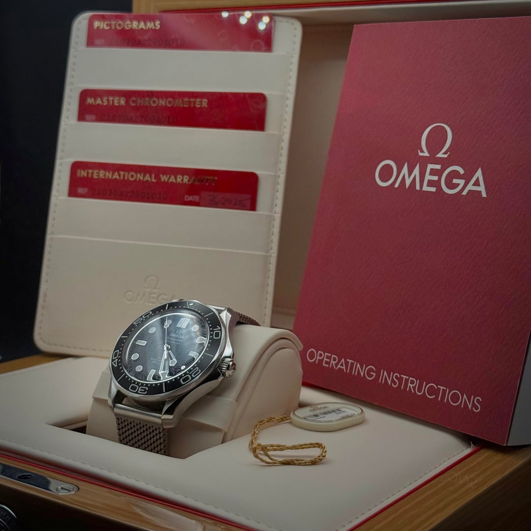 **Hey WatchEx,** Up for sale is an **Omega Seamaster Diver 300M (Ref. 210.30.42.20.01.010)** — arguably the most popular and versatile model in Omega’s modern lineup. This version features the *new-generation wave dial* design, with a beautifully vibrant black ceramic dial sitting under a domed sapphire crystal. It’s paired with the highly desirable **Milanese mesh bracelet**, offering both elegance and comfort on the wrist. At 42mm, this Seamaster hits the sweet spot — perfectly balanced for most wrist sizes and suitable for virtually any setting, from casual to formal. A true daily driver and a must-have for any watch enthusiast or Omega collector. **What’s Included:** • Omega Seamaster Diver 300M (Ref. 210.30.42.20.01.010) • Original Double Box (Inner & Outer) • Warranty Card (Omega Warranty Valid Until **2030**) • Pictogram Card • Master Chronometer Card • Manual Book **Condition:** Excellent overall — only very minor marks from light strap changes. The movement runs flawlessly, within chronometer specs. **MSRP:** $7,300 + tax **Price:** $5,550 Shipped **Location:** Virginia, USA **Payment:** Zelle or Bank Wire preferred **Timestamp:** [https://imgur.com/a/C4VF59I](https://imgur.com/a/C4VF59I) A perfect balance of luxury, durability, and versatility — the Seamaster Diver 300M delivers incredible value for the price and remains one of Omega’s most timeless designs. Happy to provide additional photos or hop on a FaceTime/video call with serious buyers. Thanks for looking and feel free to reach out with any questions or offers!