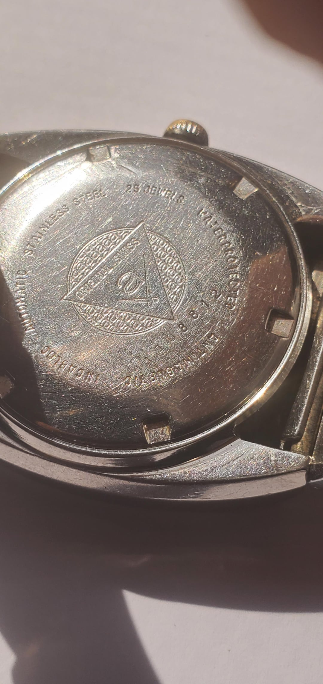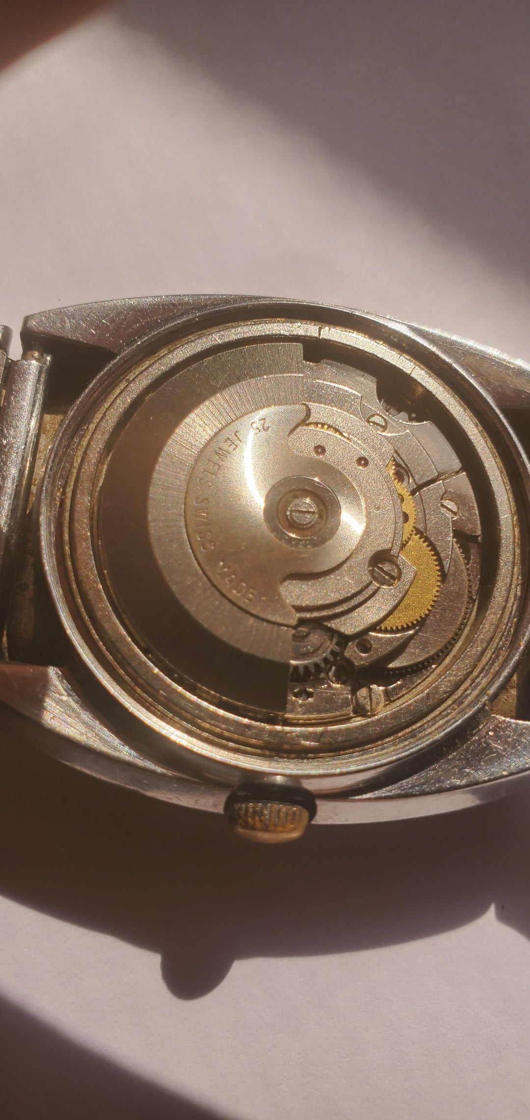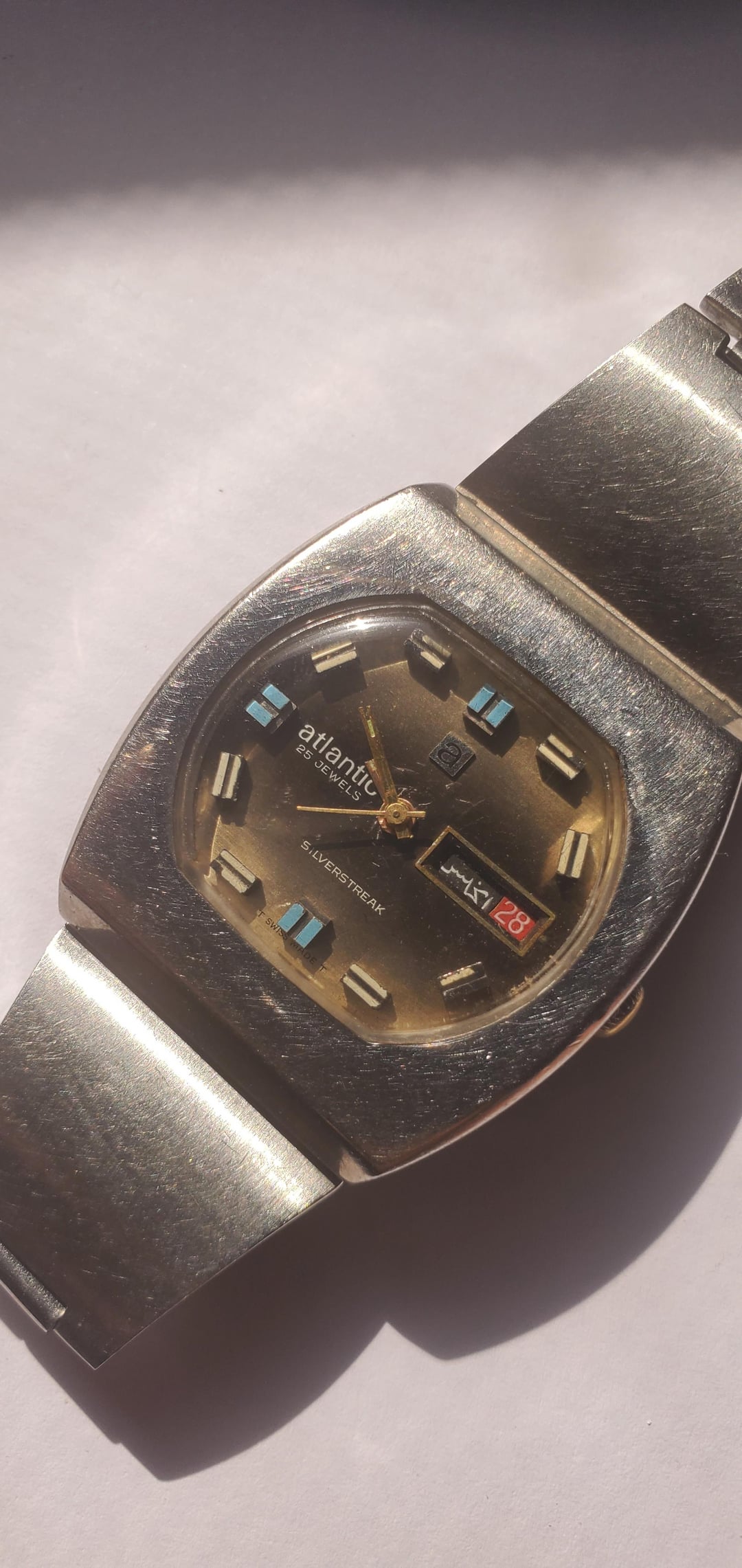 [Timestamp](https://postimg.cc/75x3JP1P) Letting go of this vintage Atlantic Silverstreak — a bold 70s design with great wrist presence and those standout blue index accents. Runs well and keeps time. Details: Atlantic Silverstreak Automatic Day/Date display 25 jewels Aftermarket crown Original stamped bracelet Strong 1970s case design with striking dial accents Case can be polished on request, but I kept it unpolished for originality Asking €120 shipped from Egypt Payment: PayPal or bank transfer Condition: Honest vintage wear, dial in nice shape, cool retro aesthetic More photos or wrist video available on request DM if interested!