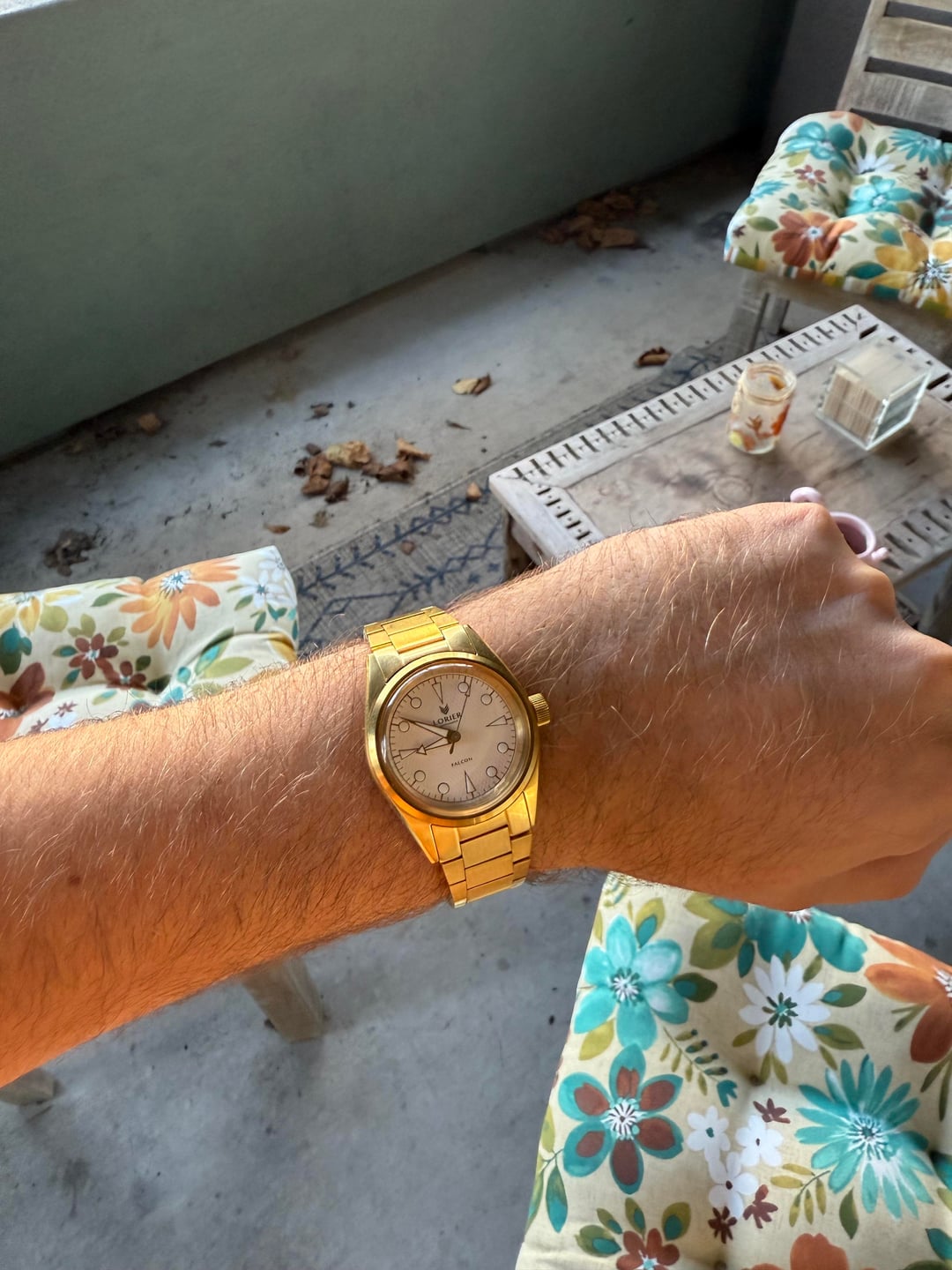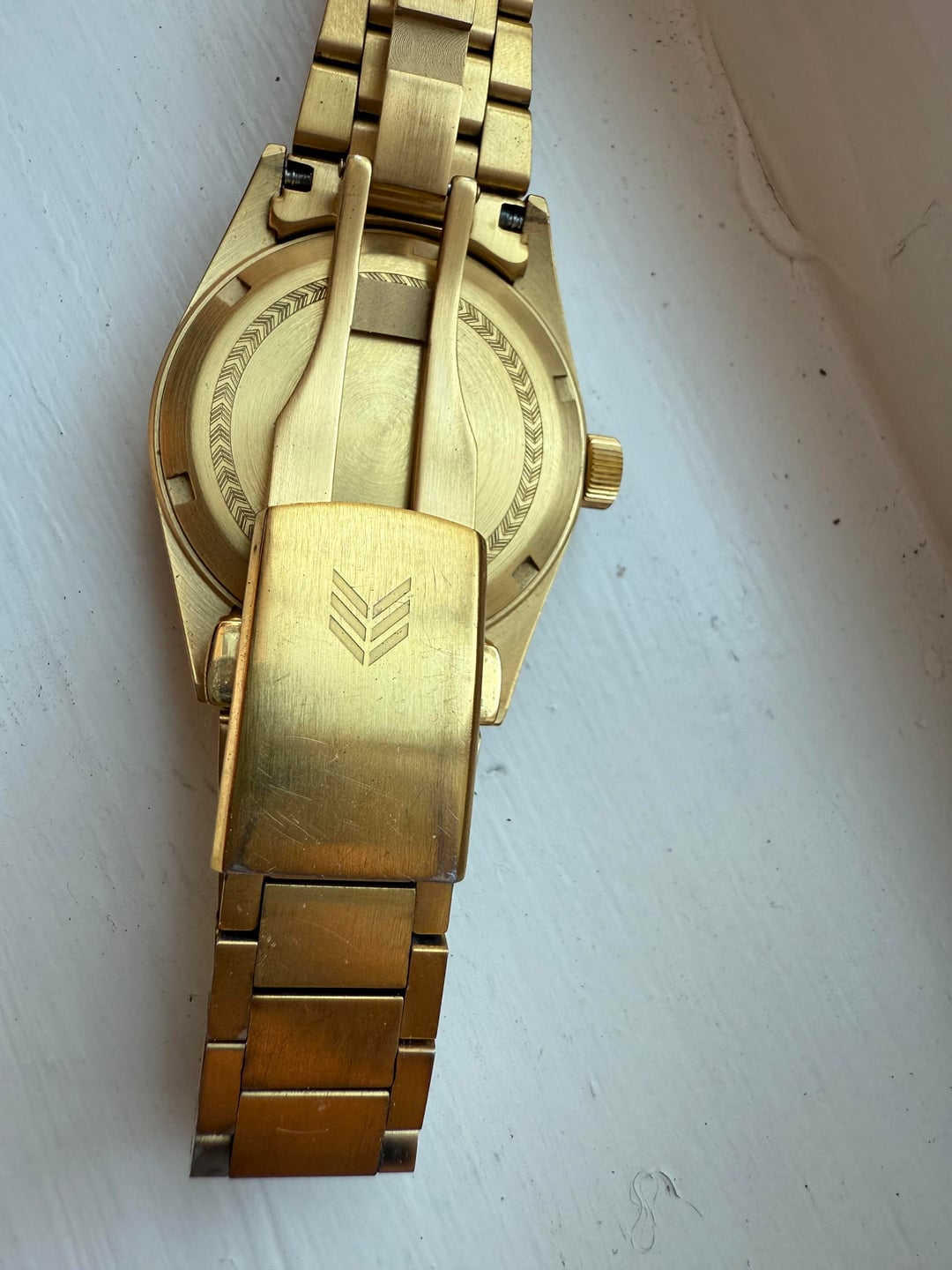 $350+ shipping OBO Lorier Falcon 2 PVD white dial. Great 36mm case true to the updated Falcon 3 and Astra. Bought when it released, I am the first and only owner. Wore it as a daily for about 2 years, runs about ~+10spd. Watch head is in great condition, hairline scratches but no wear on the PVD. Bracelet has signs of wear to the PVD as indicated in pictures on the outer wrist side, inner wrist side is clean. Sadly, I do not have extra links and it is sized to exactly 7 inches on max micro adjust. Reason for selling is I can’t wear the gold anymore. I’m a one watch collection guy and have moved to the Astra. Such a huge fan or Lorier and their value for money. More than happy to call or FaceTime with interested buyers. Although my account only says 1 transactions, I’ve had many more 4-6 years ago before they were tracked and when I was more involved in the hobby. I also have transactions on r/hardwareswap as well. Timestamp: https://imgur.com/a/nQBOhzE