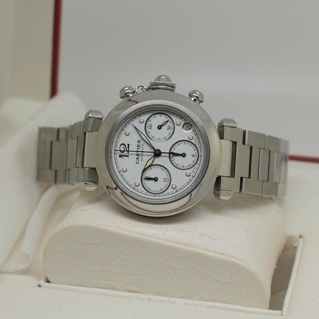 | Cartier Pasha C 2324 Automatic 35mm White Dial Steel Unisex Watch timepiece-titans (807) |