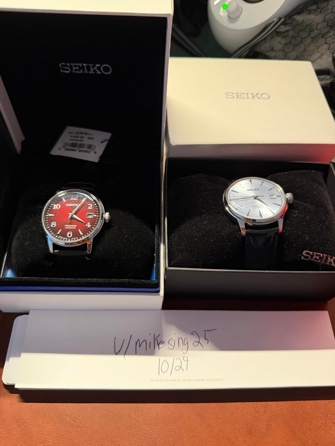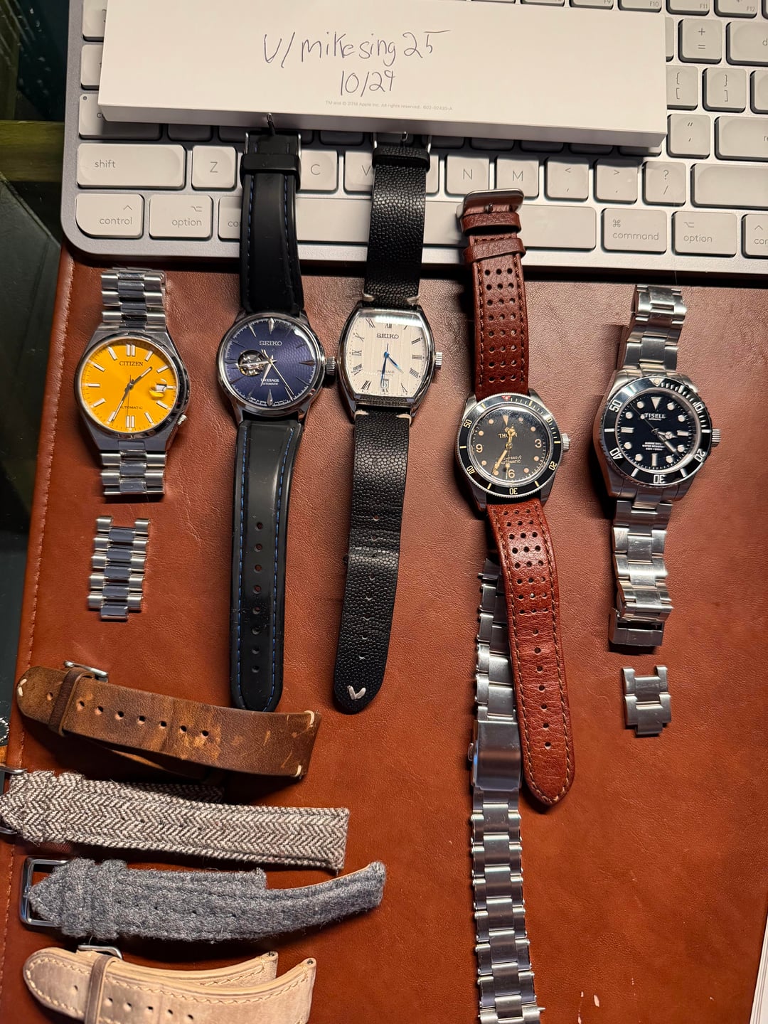 Car need some repair so selling the collection Tsuyosa - $195 All Presage Watches - $299 Green PRX - $250 Blue PRX - $195 (no metal band) Tisell dive - $185 Thorn BB - $70 Bands $5 each add on Open to offers