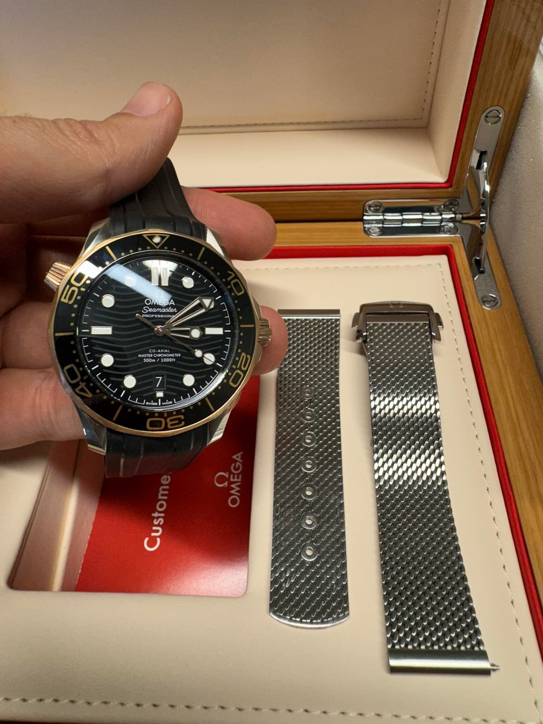 My favorite SMP! Being moved for much pricier piece that will hit my dopamine receptors for a hot minute! While I've listed this as 210.22.42.20.01.002 it is actually upgraded from that - with the deployant strap/clasp that is a $620 add on (and now out of stock with Omega.) The difference in wear for a seamaster with tang vs deployant is huge and the only reason I've stuck with seamasters so long. I also have available an Omega Standard Length Mesh - special price if bundled with the watch! This is 2021 unit recently dealer tested as running within spec. It has been worn as part of a 30 watch rotation but is maybe one of the 10 most worn of the bunch. Probably 40-50 wears all told, so I guess like a two month daily for someone else! Between current RP and the addition this is an over 10k piece! Asking a very reasonable $5400 shipping included in the US. While I ship anywhere in CONUS Sig Required fully insured, I am also available to in person buyers in Milwaukee and Chicago areas. Available for facetime to check out the watch as well. Please see my extensive history on this platform, including recent sales of a Moser Pioneer, Zenith Chronomaster Sport, No Time to Die, Pelagos, white speedmaster, and many others. I have ebay and other references available as well timestamp for today's watches: [https://imgur.com/a/7MSAXIZ?s=wa](https://imgur.com/a/7MSAXIZ?s=wa)