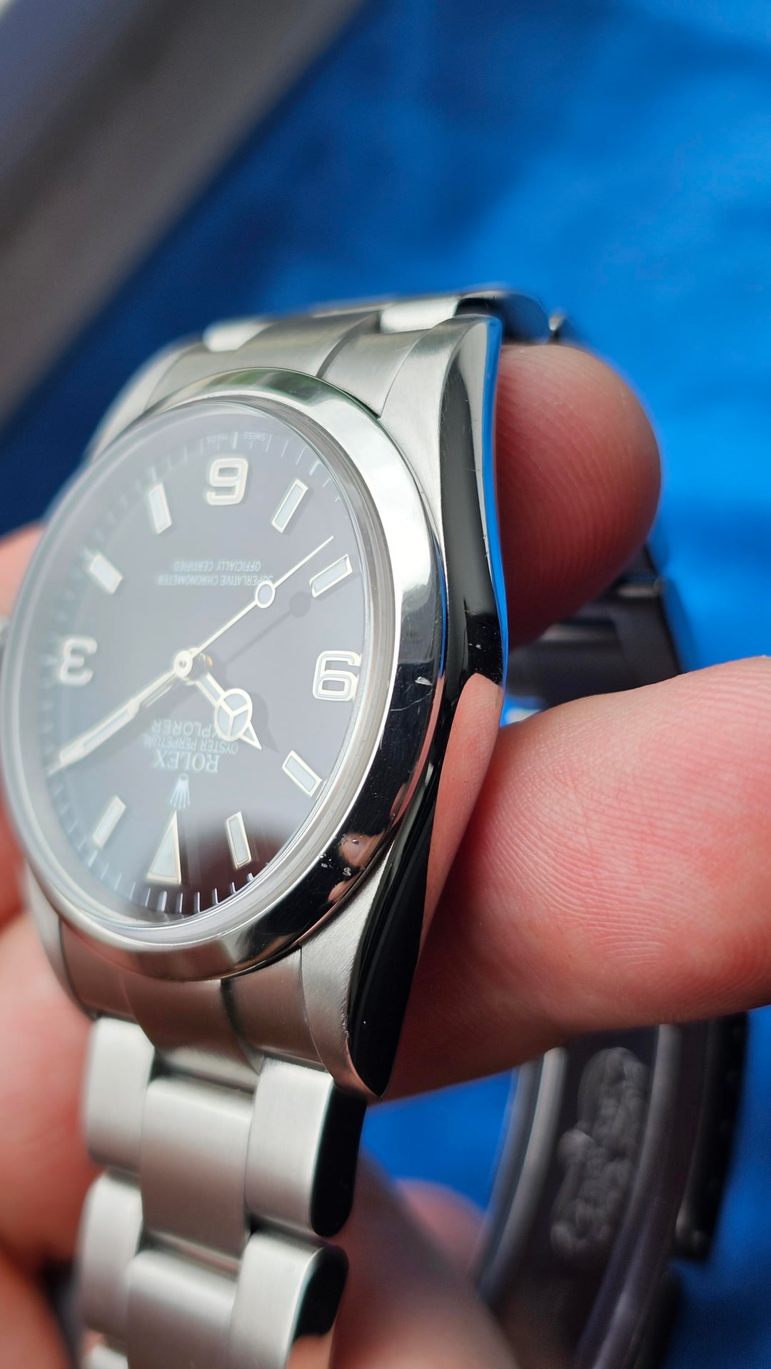 Hi again! For sale is a classic, very wearable Rolex, the 36mm Explorer I 114270 from 2003! Condition wise I would put this at 85%. The case appears unpolished and has only very light hairlines in the polished case sides and a few near invisible marks in the brushed areas. The crystal is completely clean. The most notable wear on the case is some light marks / rash on the polished bezel at 9:00 and 10:00, as well as some light marks on the top edge of the lug at 11:00. The bracelet and clasp show signs of desk diving marks but nothing egregious. All of this could be easily polished out at the next service. As it sits, it should fit roughly a 7.5” wrist – there are no additional links. Service history is unknown but it is running well within specs per my timegrapher app at 1sec/day with just a few hand winds. Watch comes as watch only in a Rolex travel pouch with timegrapher specs and a business card from the original seller (Boone Luxury). Timestamp for Reddit: [https://preview.redd.it/wts-2003-rolex-explorer-i-114270-v0-jf0atmuz22xf1.jpg?width=1080&crop=smart&auto=webp&s=c626f6c33fda6eb39227c1f2d5d787d4931c572d](https://preview.redd.it/wts-2003-rolex-explorer-i-114270-v0-jf0atmuz22xf1.jpg?width=1080&crop=smart&auto=webp&s=c626f6c33fda6eb39227c1f2d5d787d4931c572d) I am asking $5,499 including fully insured shipping in the US. Not interested in trades at this time, trade offers will be ignored. Please message me with any questions or interest and thanks for looking!