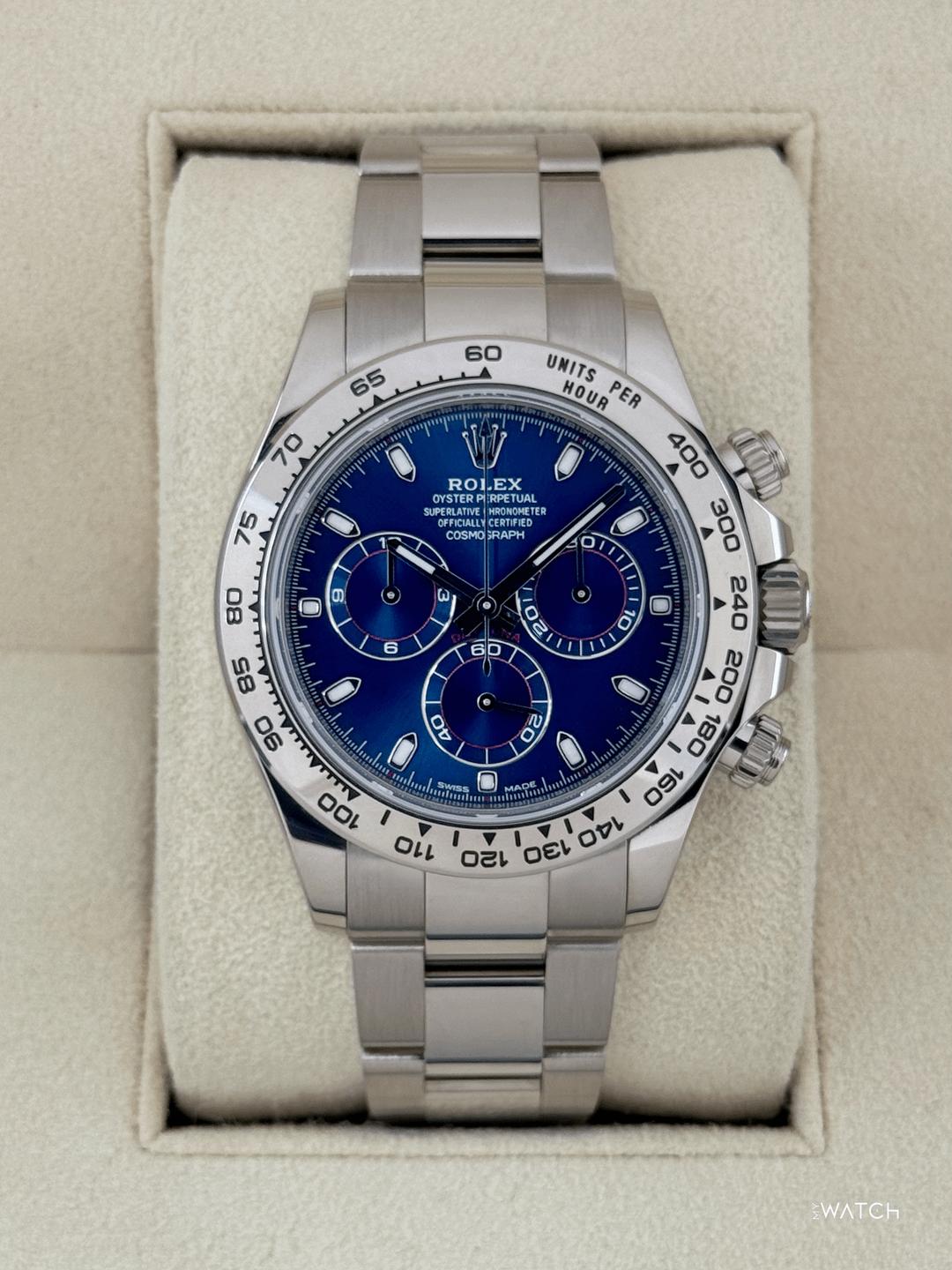 italiano![[WTS] 2022 Rolex Cosmograph Daytona 40mm 116509 18kt White Gold Blue Dial Oyster Bracelet - $44,500 1](https://cdn-cf.watchpatrol.net/600x600/img/full/029ee3f028869ce45e815d1f7d8890695bb7b148.jpg)
