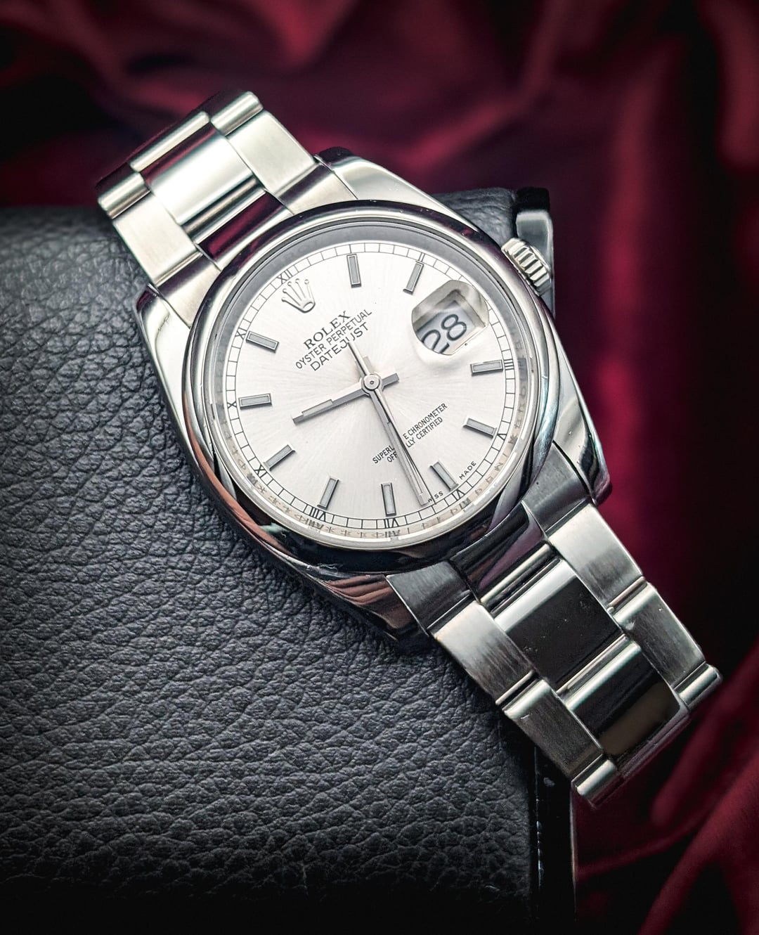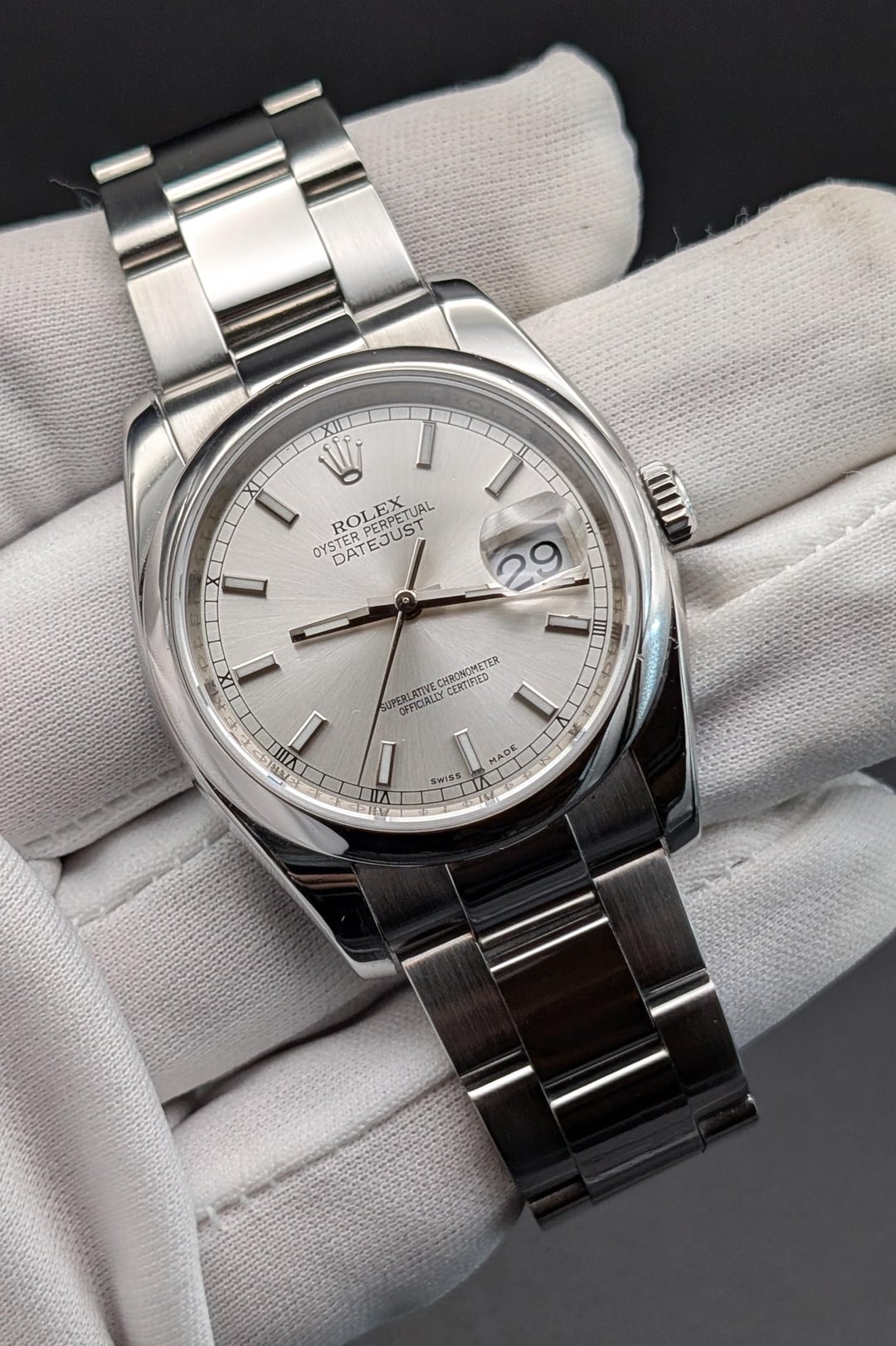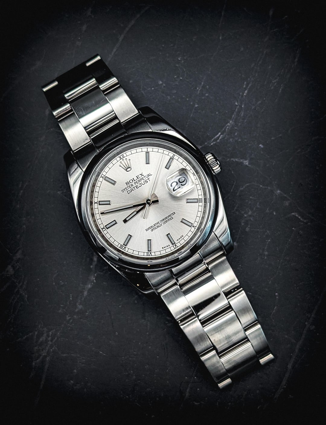 Today, I am listing a timeless staple from Rolex’s modern-classic era. The 116200 is that sweet spot where Rolex nailed the proportions, the feel, and the vibe — before everything started getting bigger, shinier, and louder. This is classic Datejust DNA in its purest modern form: 36mm of steel confidence that wears extremely comfortably and sits JUST right. Powered by the Caliber 3135, it’s one of those bulletproof movements you’ll find ticking inside everything from a Submariner to a Sea-Dweller — proven, reliable, and endlessly serviceable. It’s the everyday Rolex that doesn’t scream for attention but earns every glance. The silver sunburst dial gives off that subtle, ever-changing shimmer under natural light, paired with white gold hour markers and the iconic cyclops date window. The setup is elegant, simple, understated and simply timeless. You just cannot go wrong. This one is meant for someone who likes to actually wear their watches. It comes as watch only, runs beautifully on the timegrapher and you can pick it up at a hefty discount from market pricing at $5750 Brand: Rolex Model: Datejust 116200 Reference: 116200 Case Size: 36mm Year: - Comes as: Watch and AM carrying case Condition: Very good condition with minor wear from normal use. Can be polished to look new. Watch runs +3 seconds on timegrapher (pics in album). Price:$5,750 Image Gallery: [https://postimg.cc/gallery/WgDG607](https://postimg.cc/gallery/WgDG607) Timestamp: [https://postimg.cc/dLsFc8wQ](https://postimg.cc/dLsFc8wQ) Open to trades or purchase of: Modern Rolex, Tudor, Omega, Cartier, Breitling, Grand Seiko, IWC, Zenith. Payment Methods: Zelle or Wire. Paypal FF, Venmo and stable currency crypto available for established buyers