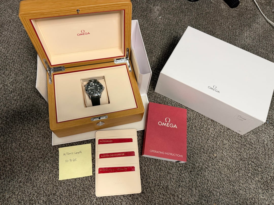 Up for sale is my 2024 Omega Seamaster. It is in absolute mint condition (only worn once). It’s unfortunately a little too big for my wrist. The stickers were recently removed and there’s not a scratch or ding on it. I am selling the complete set. Warranty is active through October of 2029. Asking $4800 OBO including shipping CONUS. Feel free to reach out or send an offer!