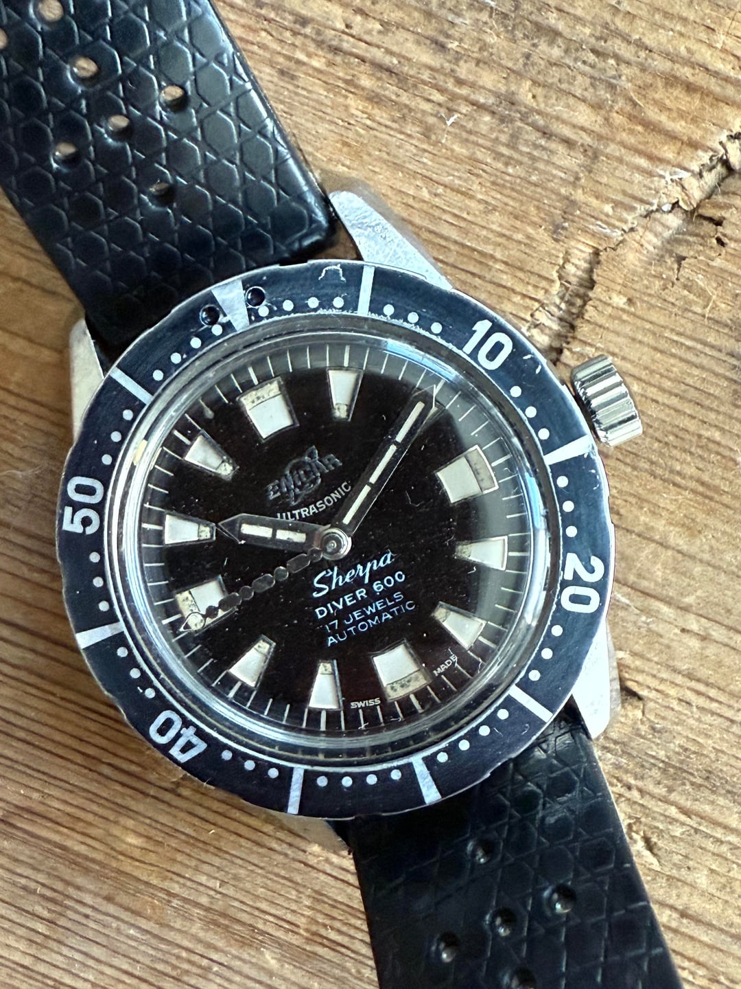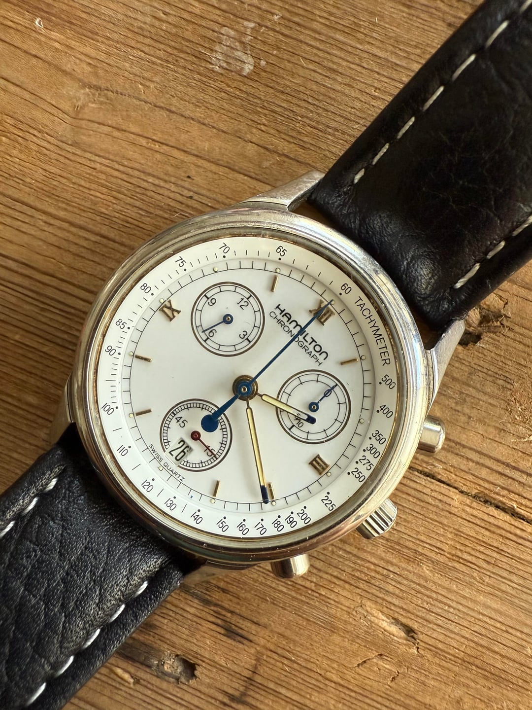 Hi, all. I have a number of watches I'm looking to sell. Please let me know if you have any questions! Notes: Paypal or Venmo preferred. Shipping is included for domestic (United States) sale only. I can ship international for an additional fee. No trades, sorry. Wyler Incaflex Life Guard - Dating from the 1960s, manual-wind Swiss movement. Runs well and is in excellent condition throughout. There’s a small imperfection on dial around the 9 o’clock marker only visible in certain lighting conditions and a small pin sized dent on the signed crown. 35.5mm case, 38.5mm case + crown, 43mm lug to lug. Asking $300 shipped Hamilton 9704 Quartz Chronograph - Hard to find model c. late 1980s to early 1990s. White dial with gold accents. Has an unusual quartz chronograph movement with multiple counting functions. Average wear throughout. 38mm case, 40mm case + crown, 44m lug to lug. Asking $500 shipped Enicar Sherpa 600 - Hard to find model. Automatic movement runs well. Moderate to heavy wear throughout including many scratches on rear caseback. Radium black dial has tropicalized. Crown is a replacement. 36mm case, 40mm case + crown, 43mm lug to lug. Asking $1100 shipped.