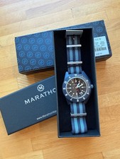 Price is $825 shipped to CONUS insured. International option available for extra. Given the current steel models going for $1k, this is a steal with historical provenance with real issued elements. Based on my internet search, these were built to MIL-W-46374D specifications—Revision D being the first to include analog quartz models. Among the contractors (Hamilton, Stocker & Yale, and Marathon/Gallet), the Gallet-marked examples are by far the hardest to find and highly sought after by collectors of issued and spec-built military timepieces. A clean, honest example showing light wear from age and use. • Bezel, case, and crystal have minor surface marks but no deep scratches or damage. • Bezel turns smoothly with proper bidirectional clicks. • Screw-down crown threads tightly and operates as it should. • Runs strong and keeps accurate time. Overall, a well-preserved specimen of a historically important field/pilot’s watch. Specifications • Movement: Harley Ronda 373, Swiss quartz (hacking, no date) • Case Diameter: 41.5 mm • Lug Width: 19.3 mm (fits 20 mm NATO; fixed bars, no spring bars) • Lug-to-Lug: 47.6 mm • Width w/ Crown: 43.4 mm • Bezel: 12-hour, bi-directional • Finish: Bead-blasted stainless steel • WR: Originally rated to 60 m (pressure test recommended before submersion) • Dial: Arabic numerals with 24-hour inset scale, tritium gas tube illumination • Crown: Screw-down • Origin: Swiss-made • Strap: I can include a couple of 20mm nato straps. Pictured black leather nato and compass module are not included. Caseback Markings • GALLET & CO. • 6645-01-150-8115 (NSN) • 211 (Model number) • DLA400-89-MW643 (Contract number; “89” denotes contract year) • OCTOBER 1989 A classic piece of military watch history. Built tough, simple, and functional—the Gallet/Marathon Navigator is a fantastic one to be worn and enjoyed. I am a private enthusiast and do not offer returns, so please ask as many questions as needed prior to purchasing.