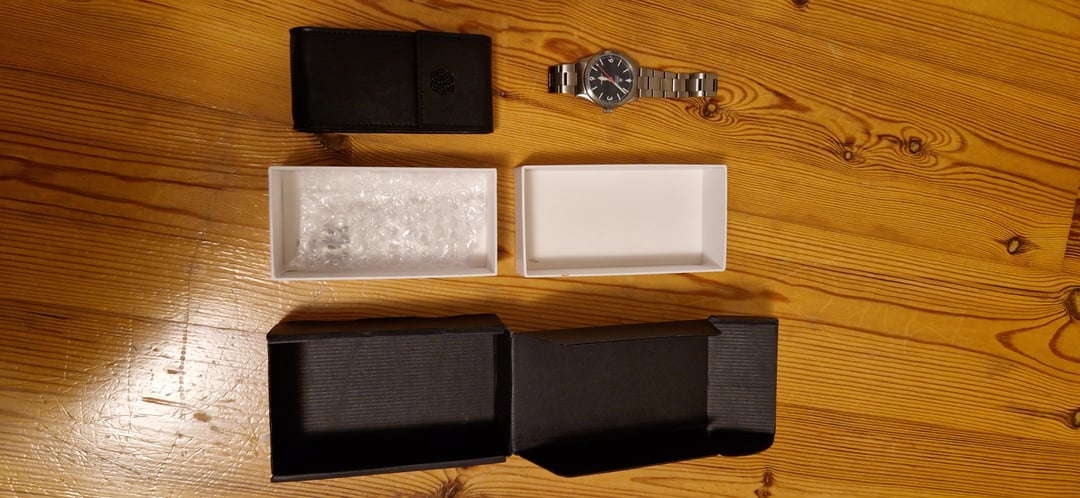 In very good condition, with very few signs of use. Beautiful, two part black dial with numeric indices in an Explorer style. Movement running nicely and keeping good time. Comes with original packaging and travel pouch. Asking price is 450€/500USD plus shipping, but I am open to offers.