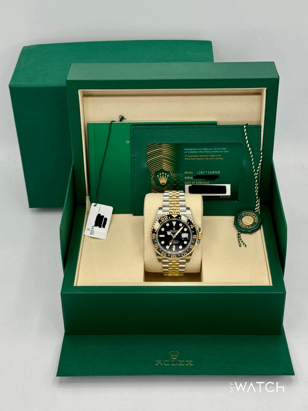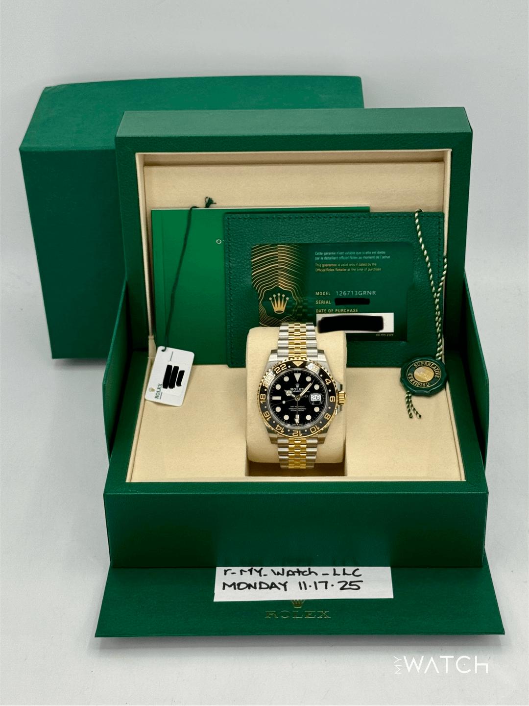 🔵**NEW 2025 Rolex GMT-Master II 40mm 126713GRNR Two-Tone "Yellow Rolesor" Stainless Steel and 18k Yellow Gold with Jubilee Bracelet and Black Dial** 🔵**TRADE or SELL us your luxury watch, all brands considered. Message me details.** **Includes the following:** **✔️BRAND NEW 2025 UPDATED ROLEX BOX (DOUBLE BOXED)** **✔️Box and Papers - Yes** **✔️Warranty card dated 2025** **✔️Manual and Warranty booklets**  **✔️Green and White Hang Tags included** **✔️Stainless Steel and Yellow Gold** **✔️Size: 7.75inch wrist (Full Links)** **✔️Watch is BRAND NEW/UNWORN** **✔️**[**Trades**](https://mywatchllc.com/pages/sell-rolex-watch) **welcome**  Business Name: **My Watch LLC**  LOCATION: Oak Park, Michigan ✔️[MyWatchLLC.com](http://mywatchllc.com/) for current inventory ✔️Google Business Listing [https://g.co/kgs/Cmd6FPW](https://g.co/kgs/Cmd6FPW) ✔️Business Hours M-F 9-6 ✔️Facetime/Video chat/calls welcome to view the watch interested.  ✔️Contact: 248-422-0909 via text or call for quickest response. 🟢TERMS: Visit [MyWatchLLC.Com](http://mywatchllc.com/) for payments accepted 🟢REFERENCES/REVIEWS: We are well reviewed on all platforms from google, trust pilot, rolexforums, additionally we have 300+ reference in multiple FaceBook watch groups, reference checks welcome. 🟢SHIPPING: If you are not local, we offer Fully Insured FedEx overnight shipping in the USA for a fee. International shipping available.