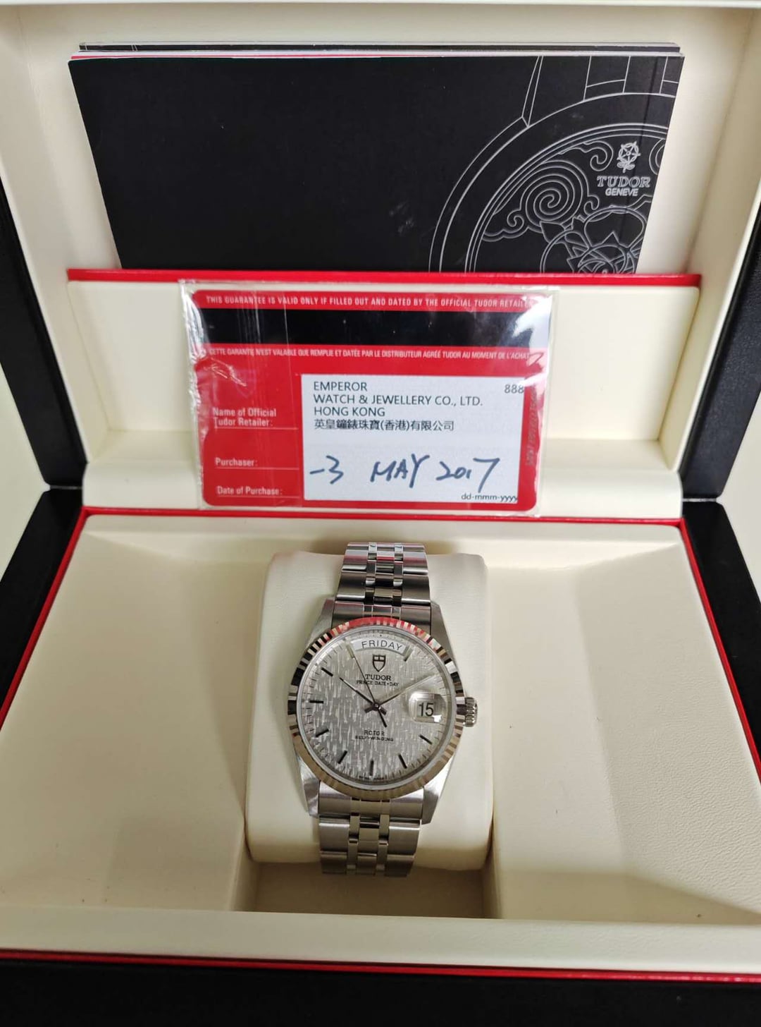 Up for sale is the Tudor Prince Date Day Linen Dial 76214 36mm Full Set. **Price: $2999. Payment via PayPal or Wise is preferred.** **Watch is in Chongqing (known as the Cyberpunk City), China.** **I will pay the customs duties or tariffs for buyers located in the United States. Watches will be shipped via FedEx, which delivers to your doorstep in just four days.** Worldwide shipping and I am willing to ship this watch anywhere with buyers paying for the shipping. If you really love this watch and pay fast, I will offer free shipping! **The watch is 100% authenticity guaranteed**. It comes with a warranty card dated 2017, a Tudor box, and three Tudor booklets. It is fully functional and running at +2s/d. Please don't hesitate to ask me any questions, thank you! **I am able to source all kinds of Tudors, please feel free to PM me!**