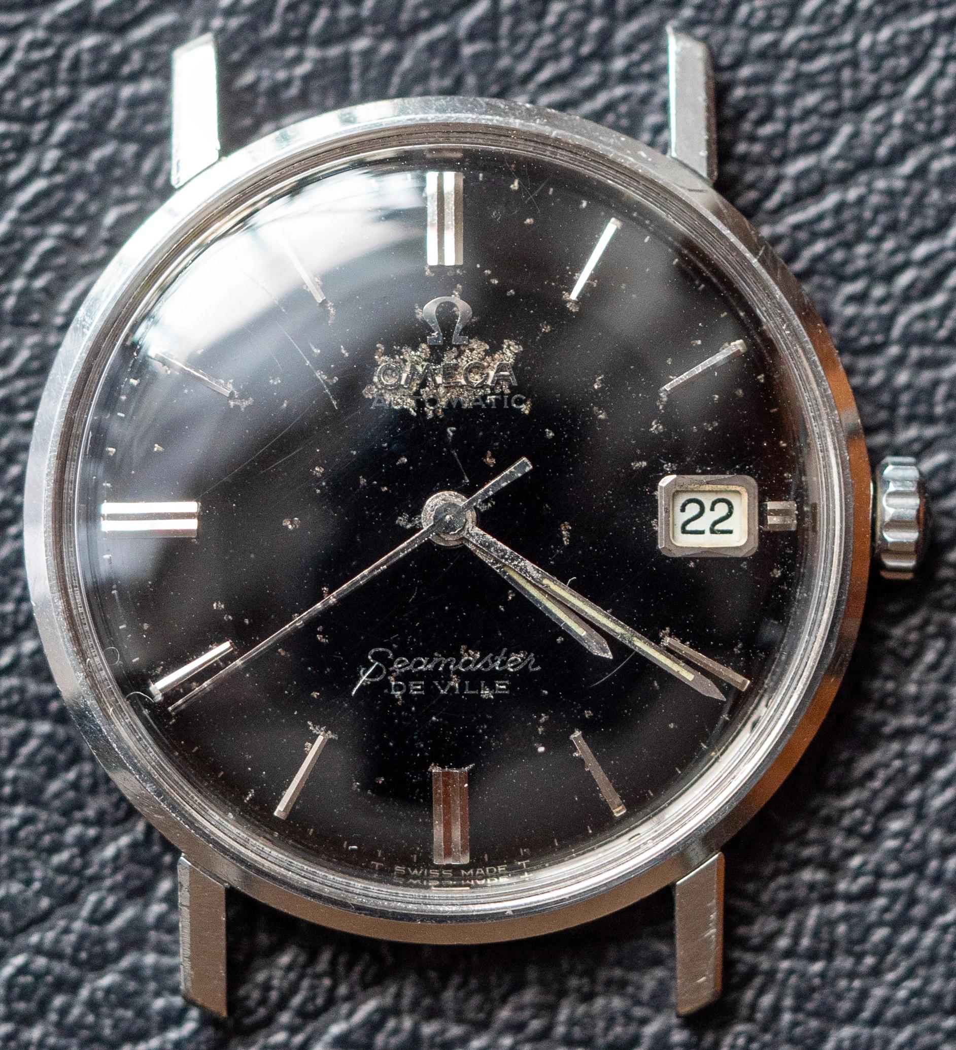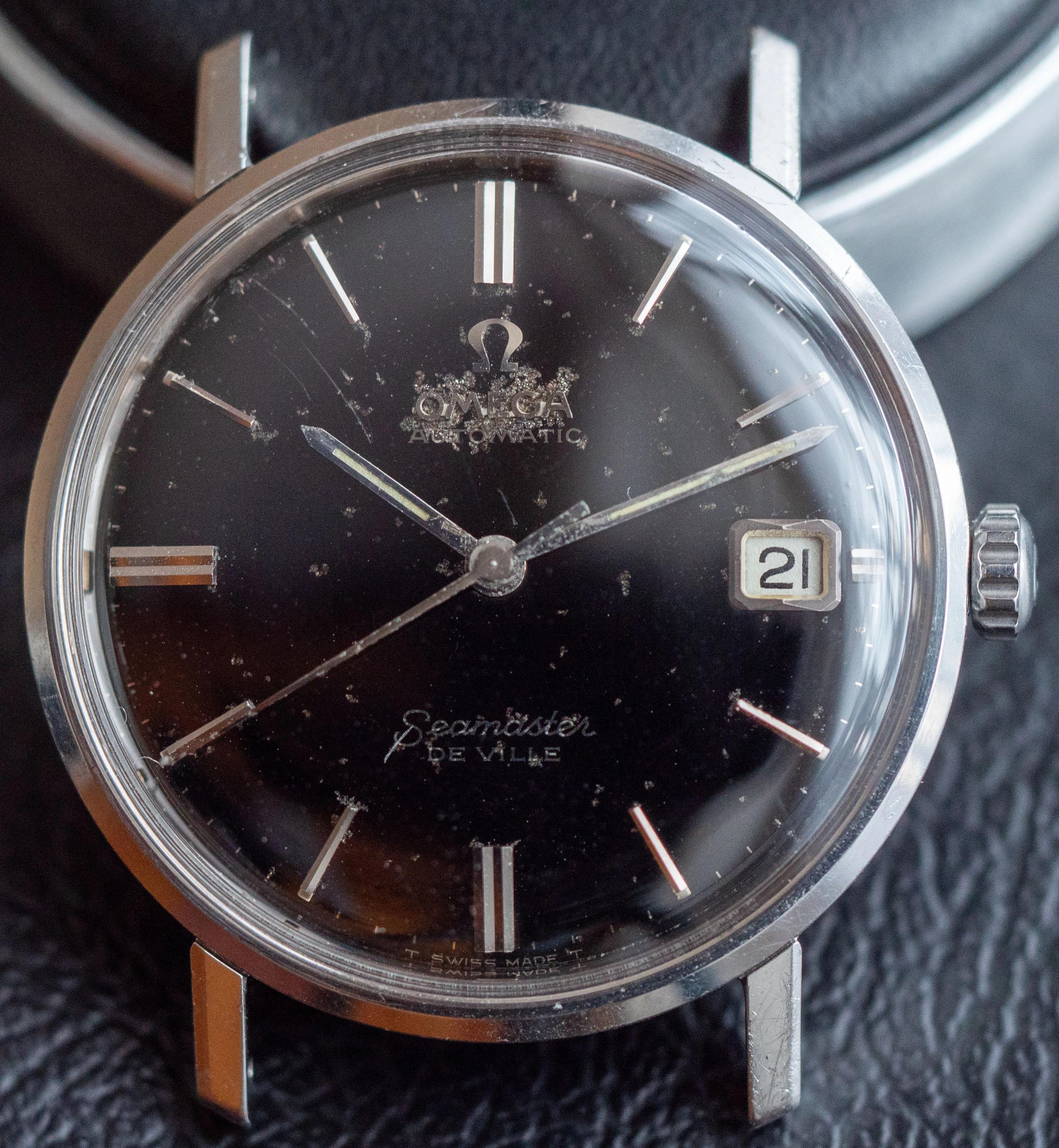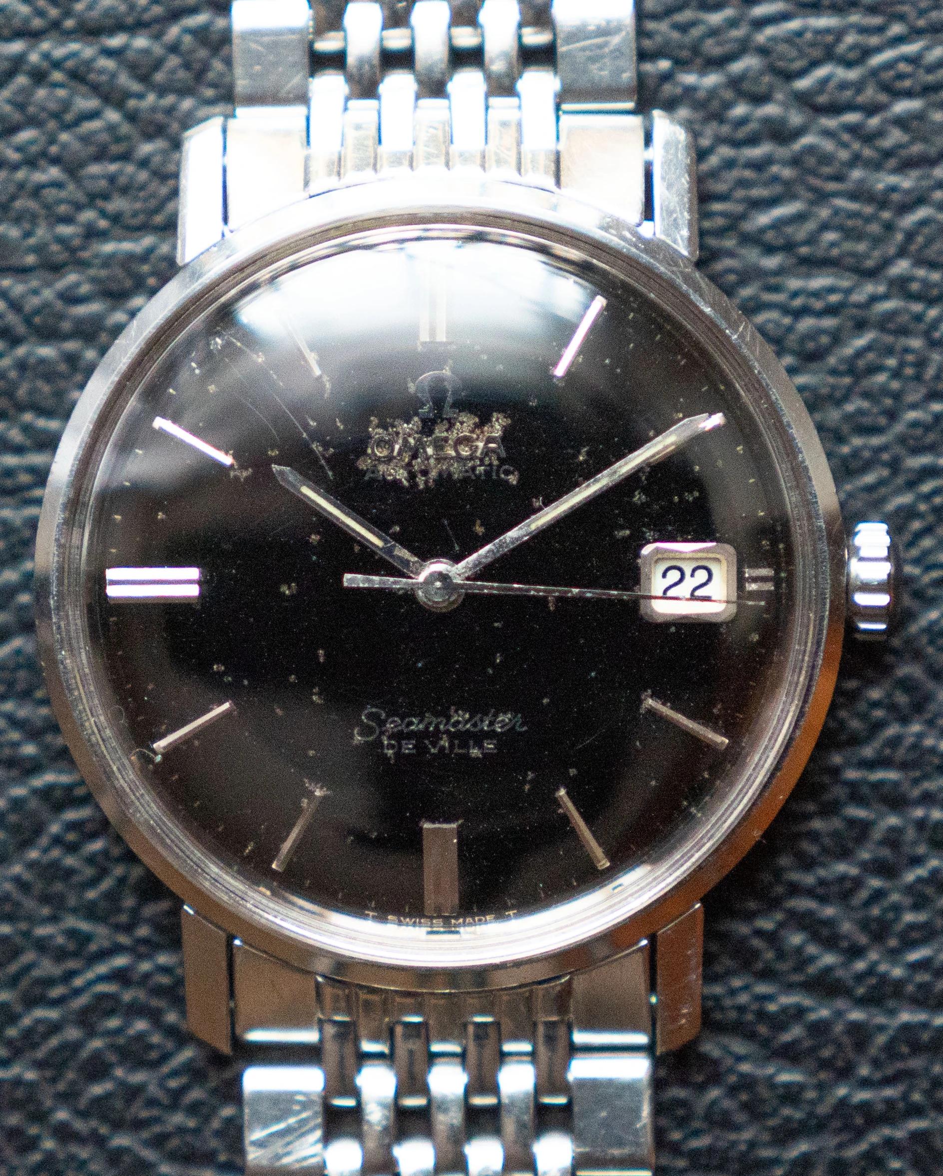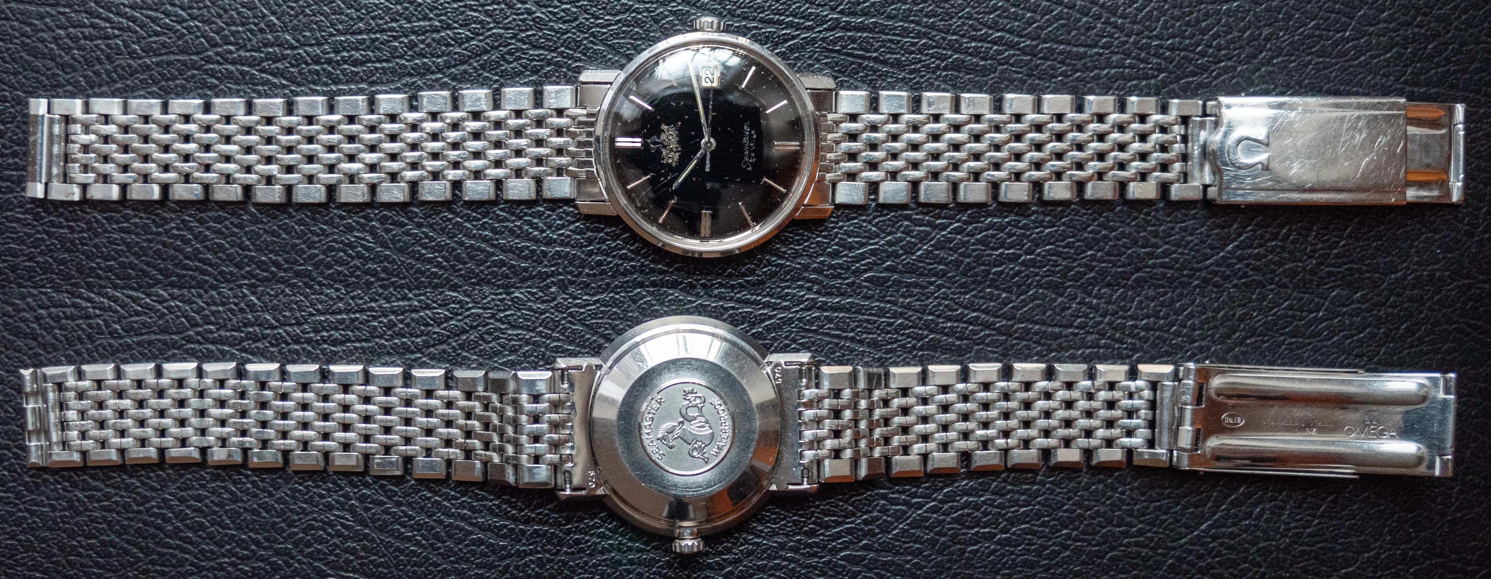 I am putting up for sale an Omega Seamaster DeVille 166.020 with black gilt dial and Beads of Rice bracelet.
