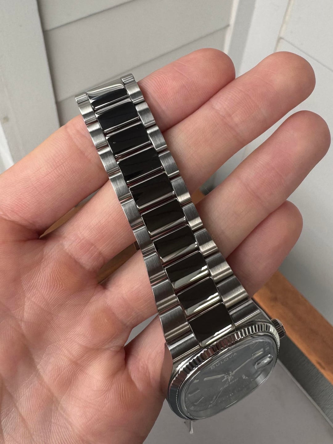 Excellent condition - very minor marks on the polished center links Bulova website link for specs/info: https://www.bulova.com/us/en/product/96B440.html?redirect=false&utm_campaign=&utm_content=&utm_id=9495047730&utm_term=&gad_source=1&gad_campaignid=9495047730&gclid=EAIaIQobChMIluHV_pGEkQMV3F1_AB3pGBjYEAQYAiABEgKUCvD_BwE $325 shipped OBO. CONUS only please Zelle or Venmo preferred